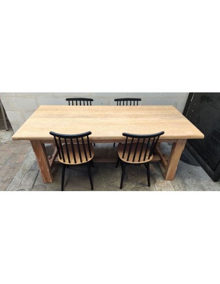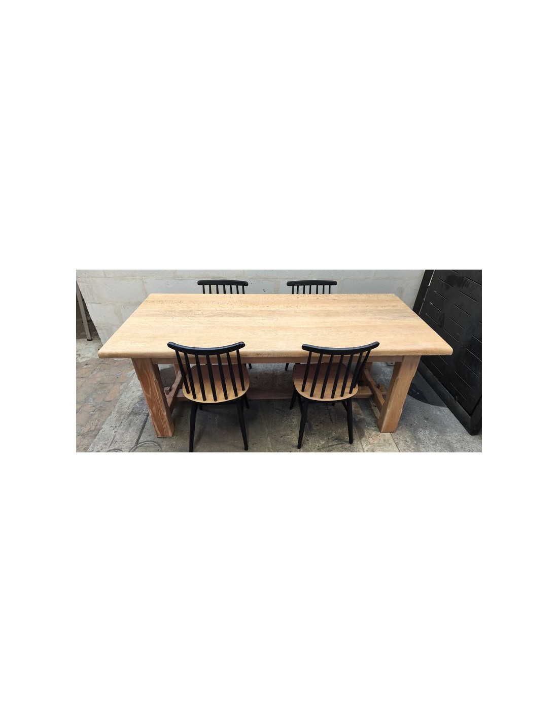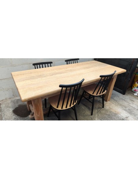 Cette table à était complètement décapée puis repeinte en rouge et noir