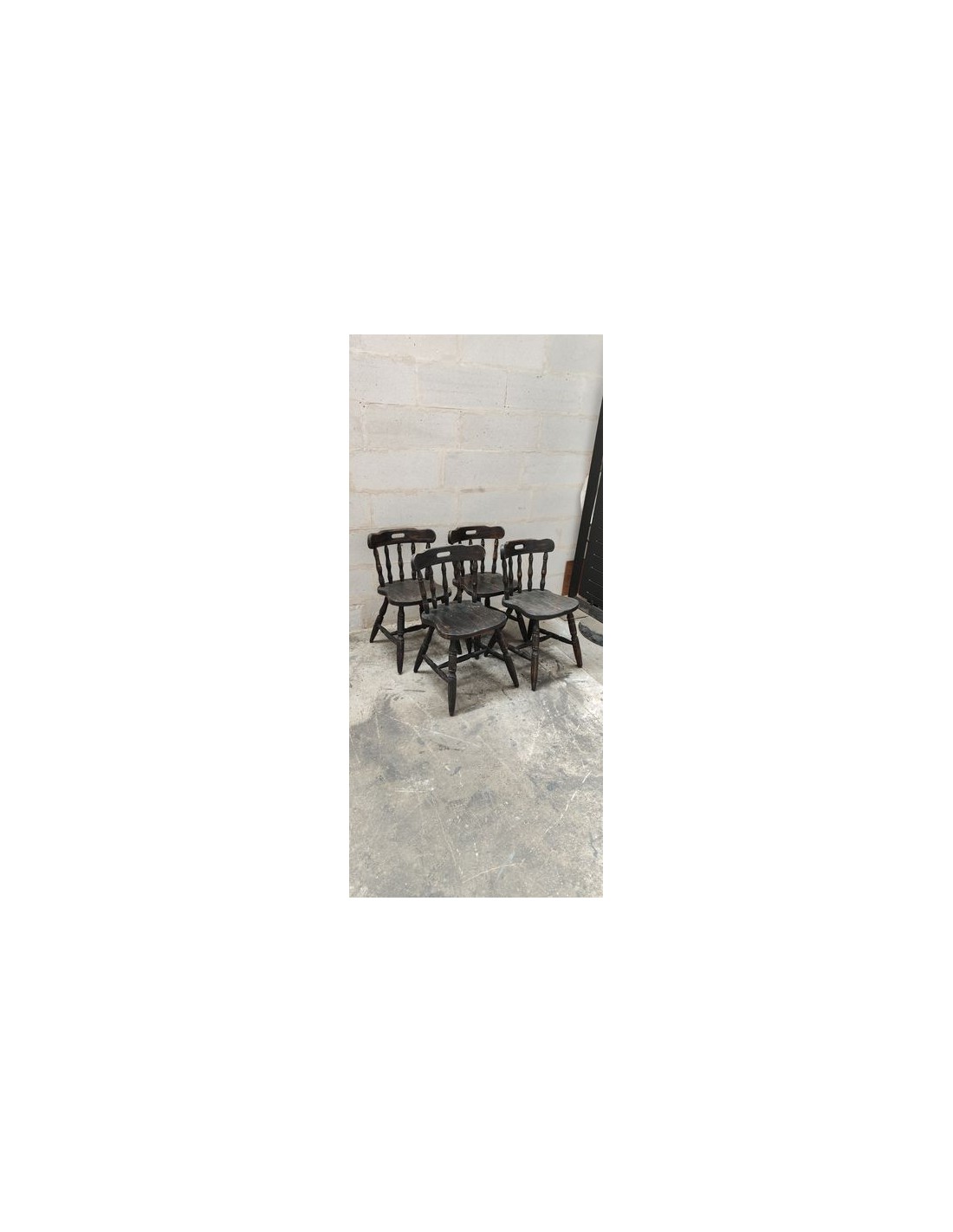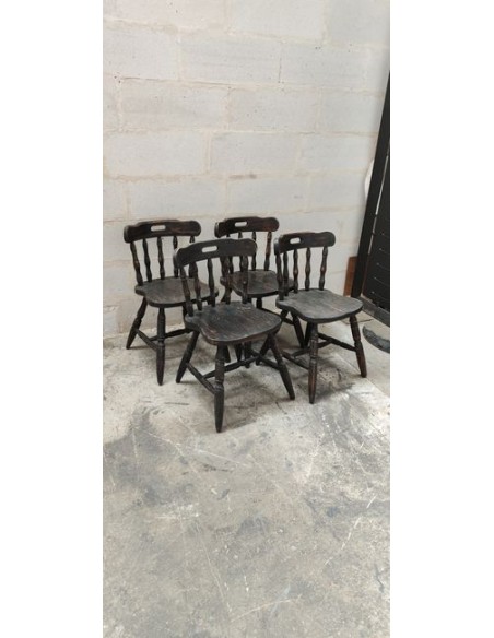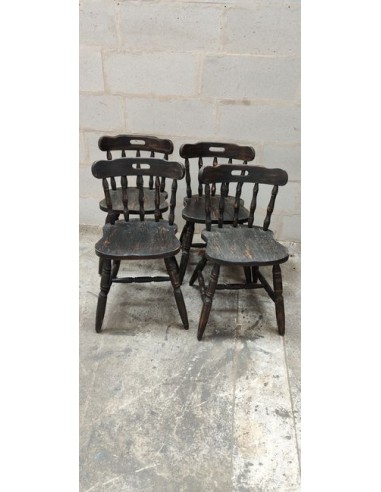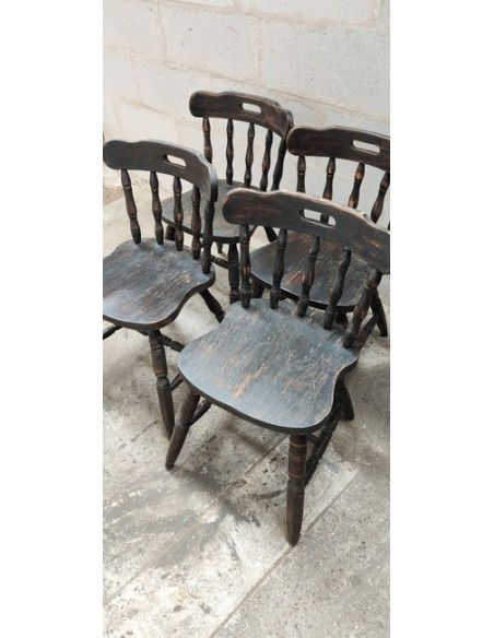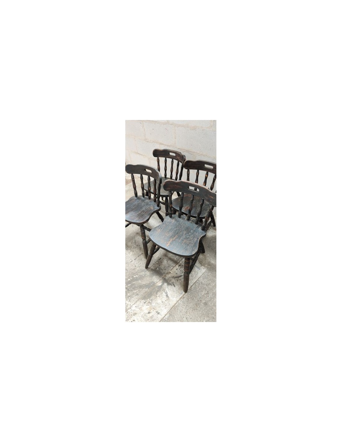 Série de quatre chaises bistrot western chaises anciennes d'estaminet des Flandres décapées