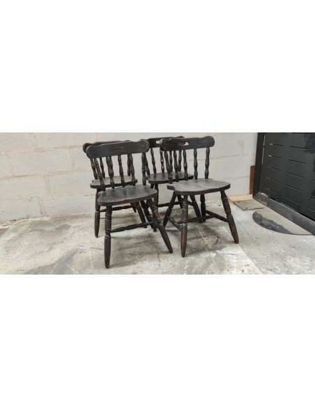 copy of Série de quatre chaises bistrot western décapées chaises anciennes d'estaminet des Flandres
