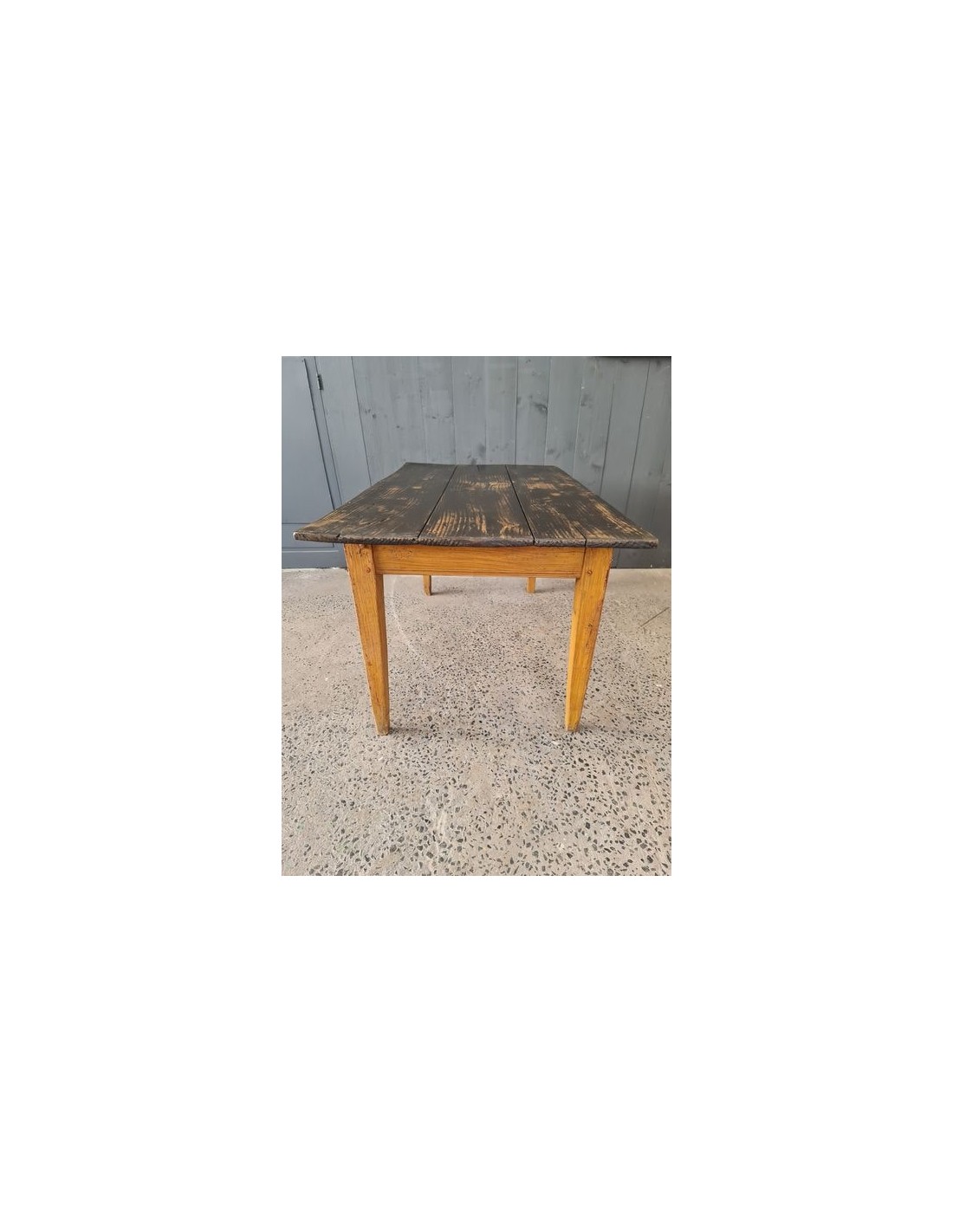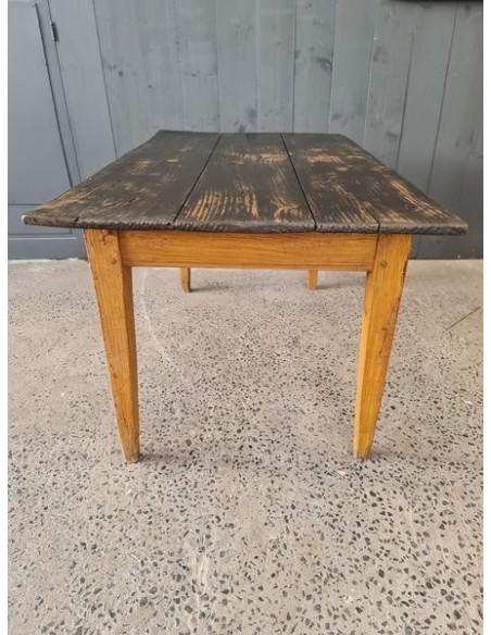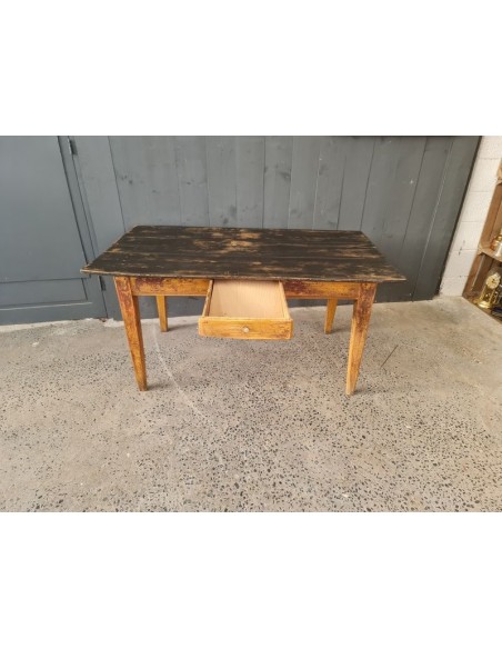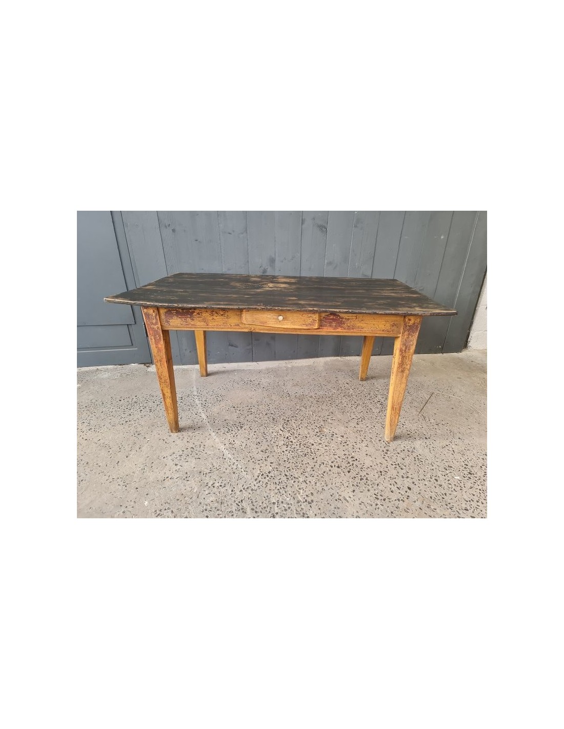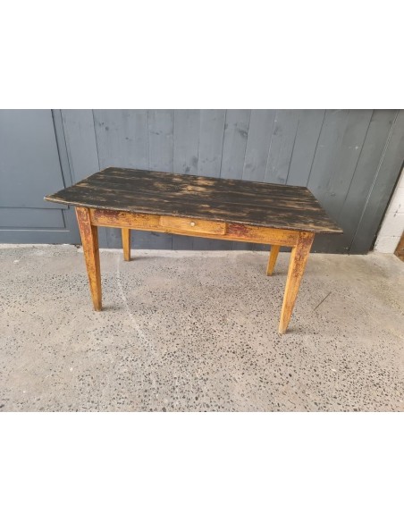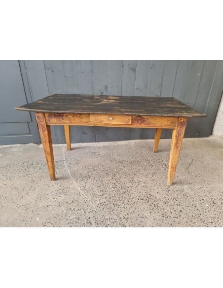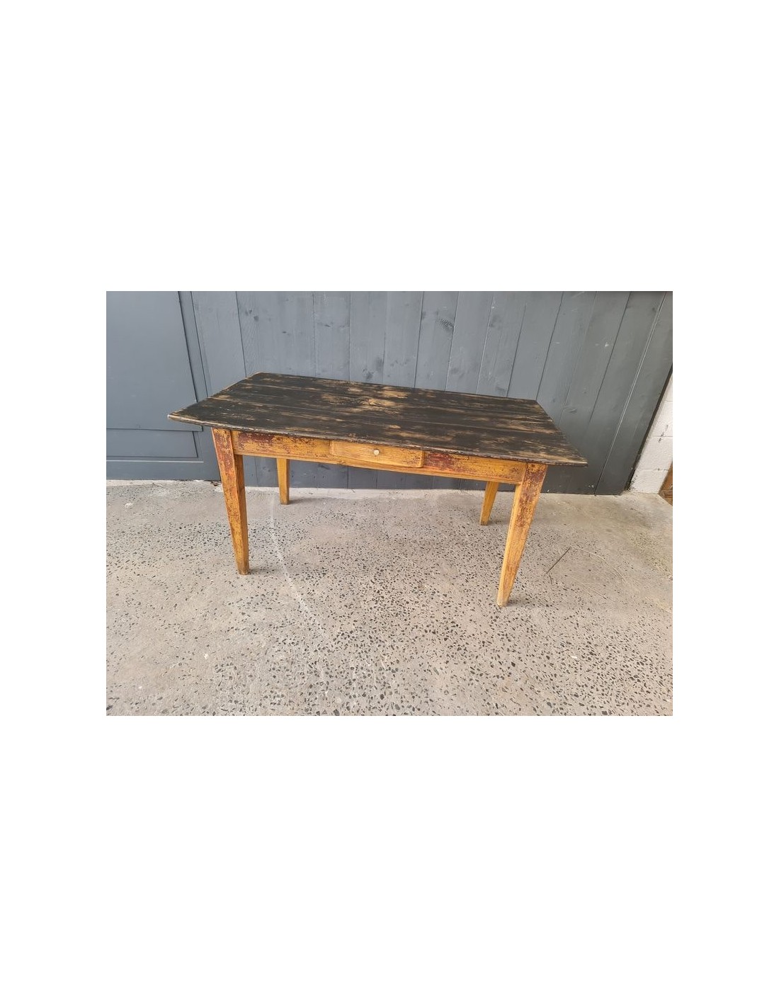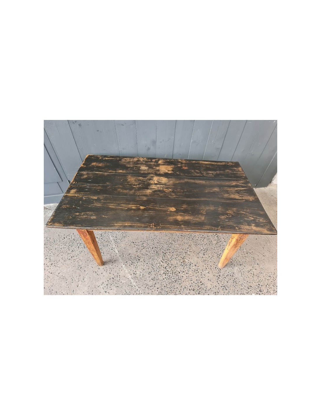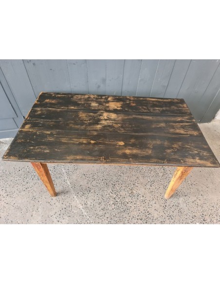 Cette table à était complètement décapée puis repeinte en rouge et noir