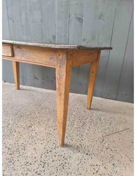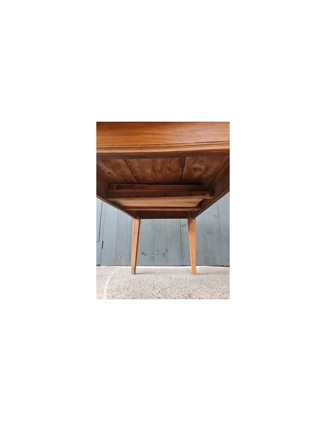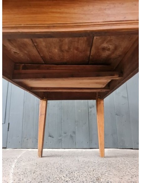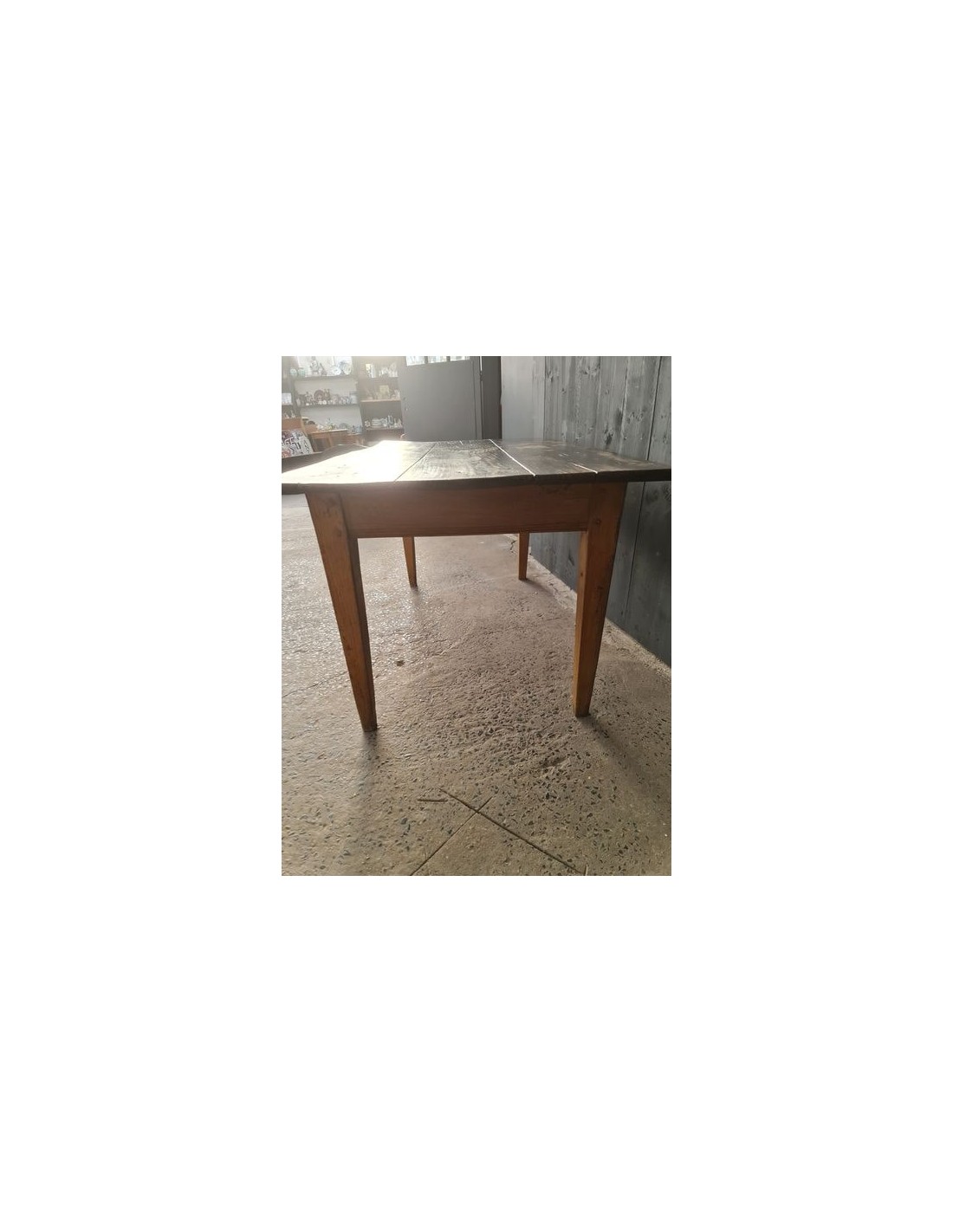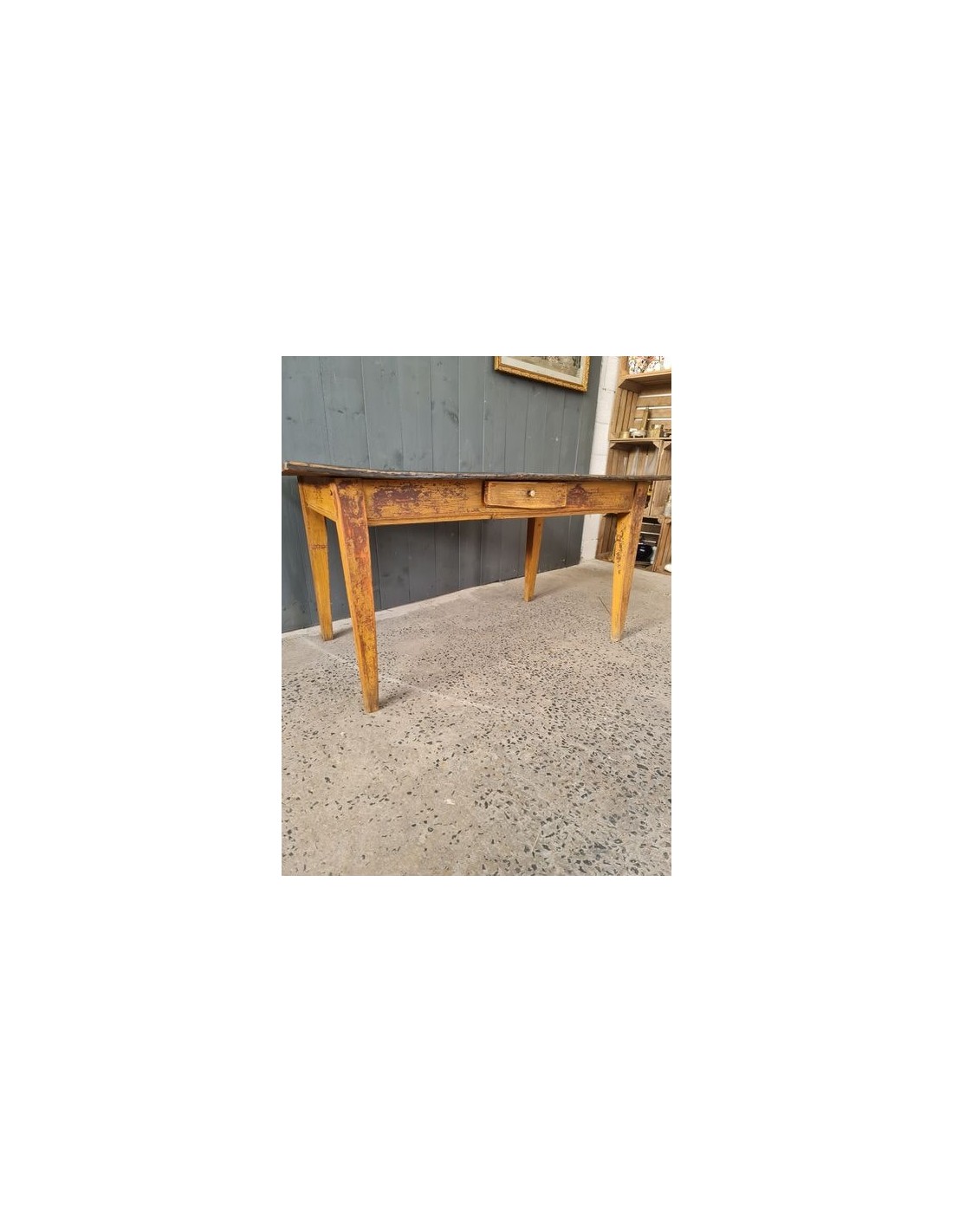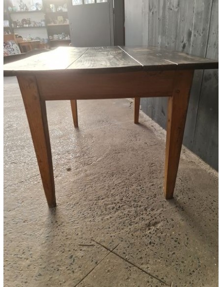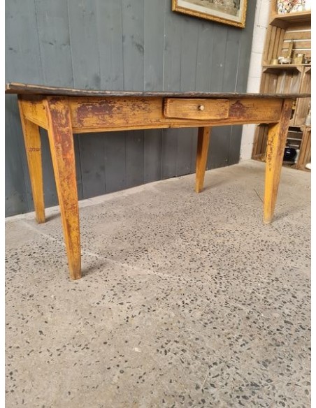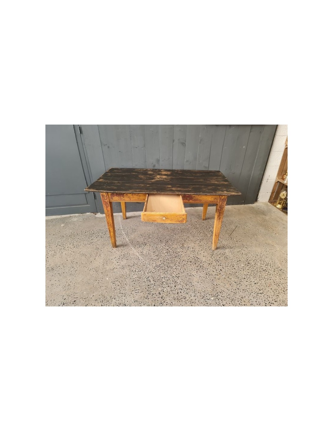 Cette table à était complètement décapée puis repeinte en rouge et noir