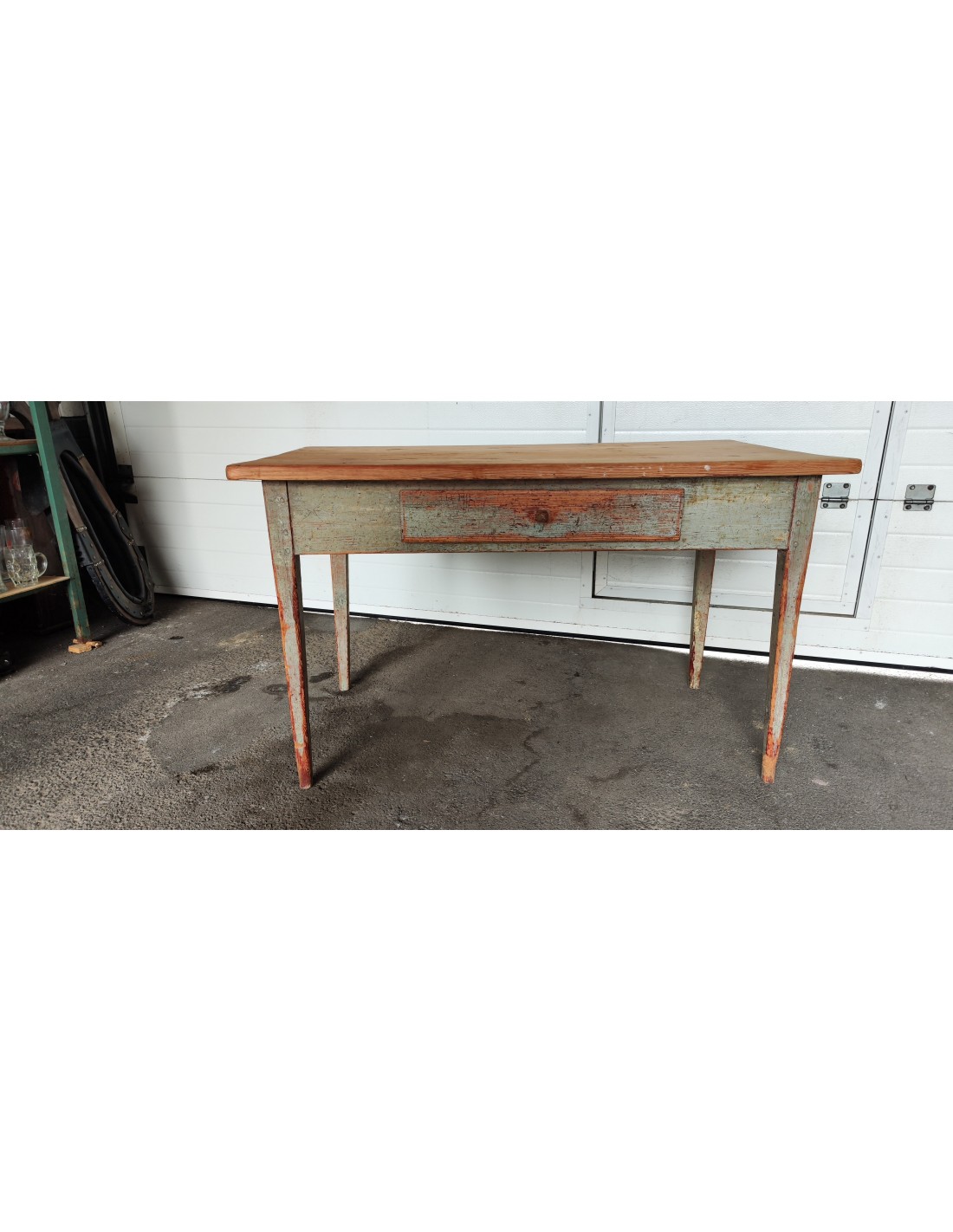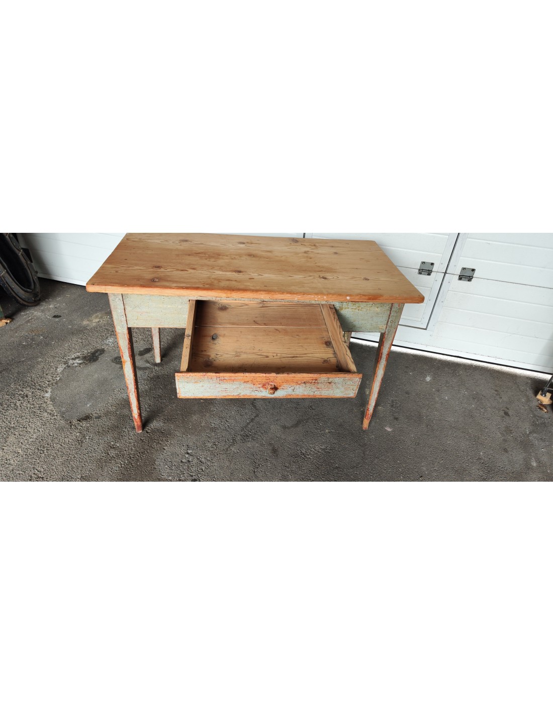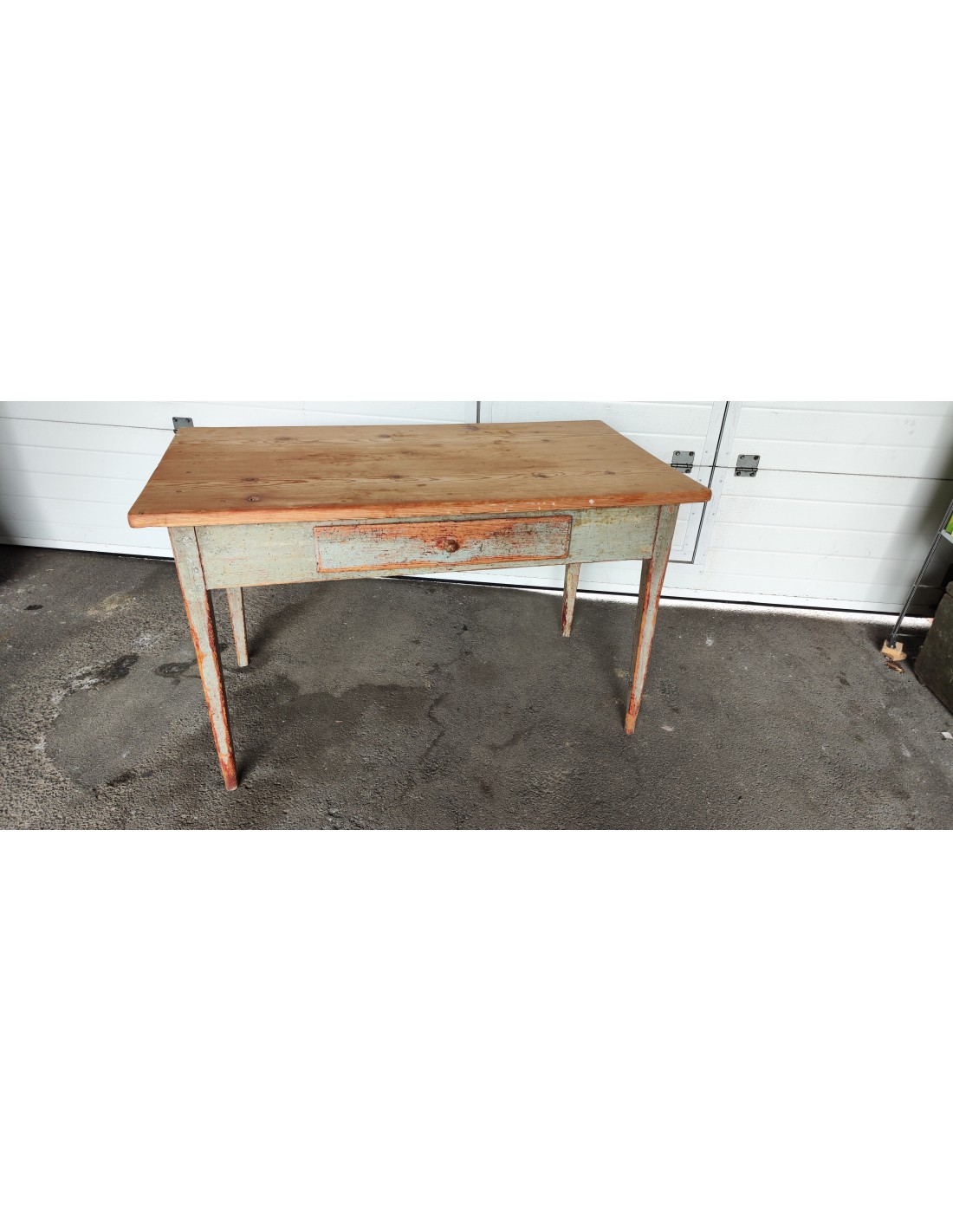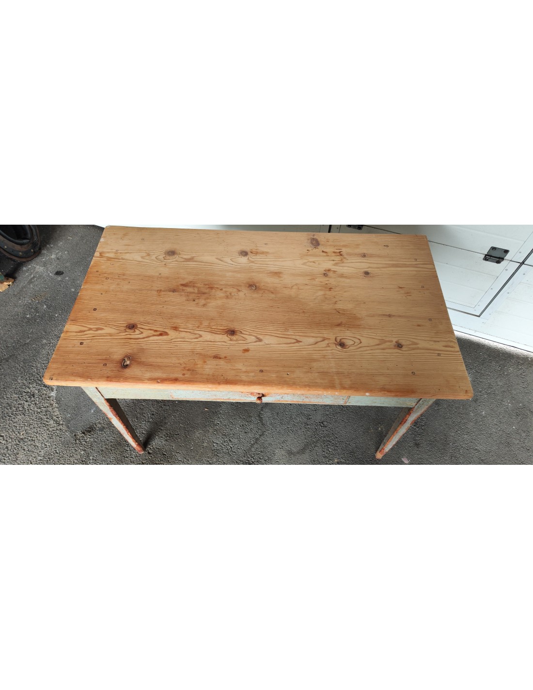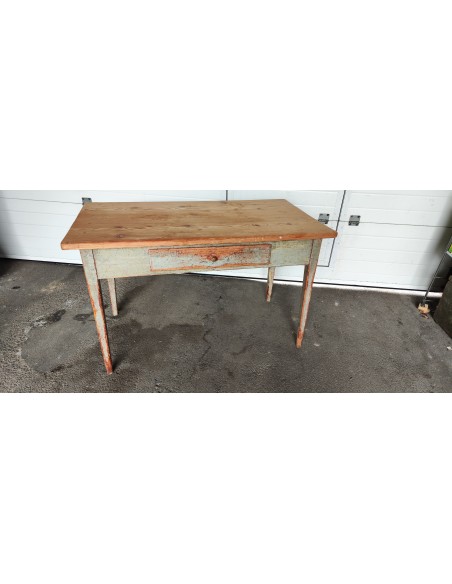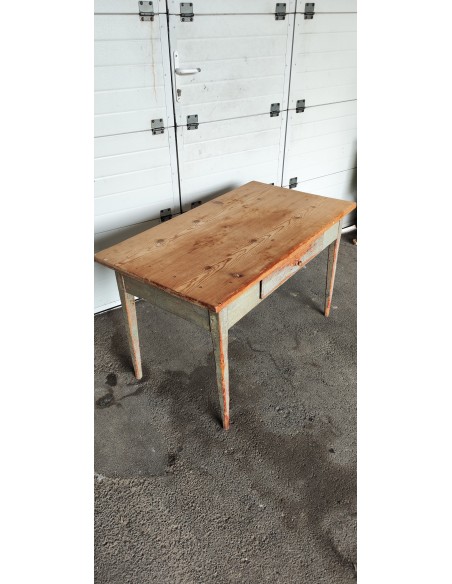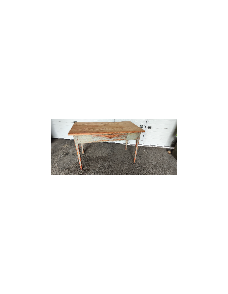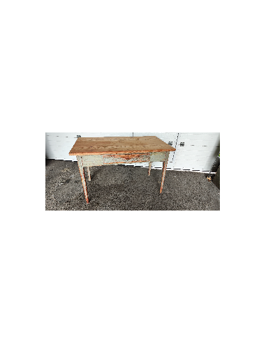 Cette table à était complètement décapée puis repeinte en rouge et noir