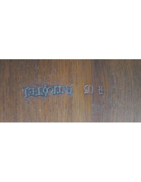 Cette table à était complètement décapée puis repeinte en rouge et noir