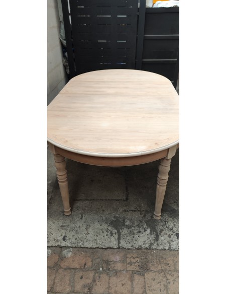 Cette table à était complètement décapée puis repeinte en rouge et noir