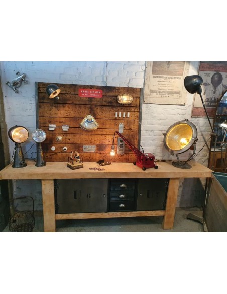 Ancien tableau électrique décoratif avec lampe Jielde et lampe de coursive