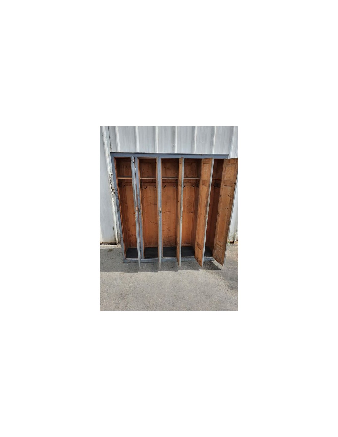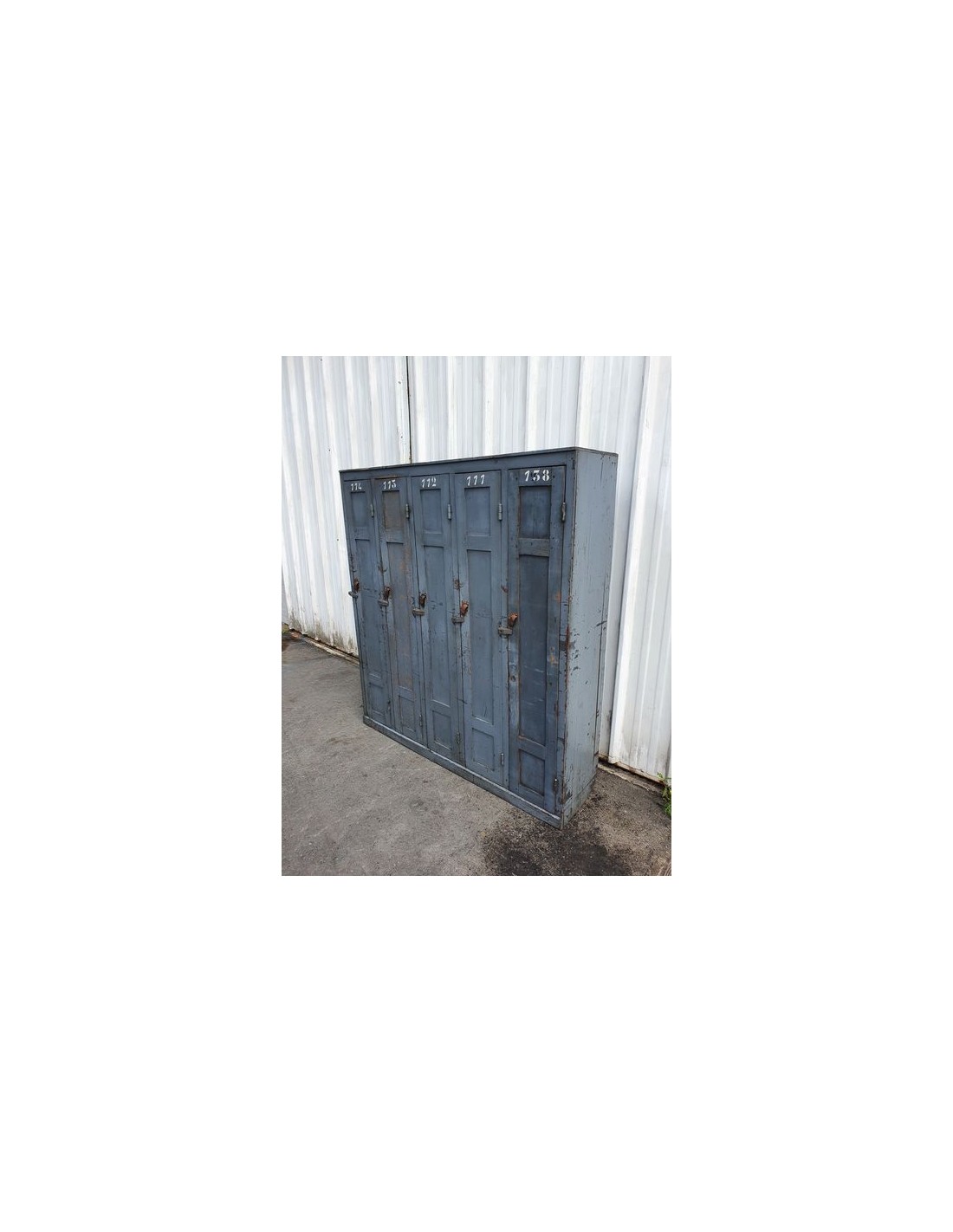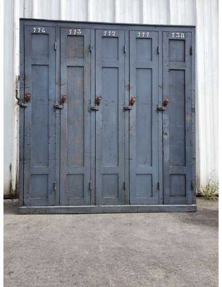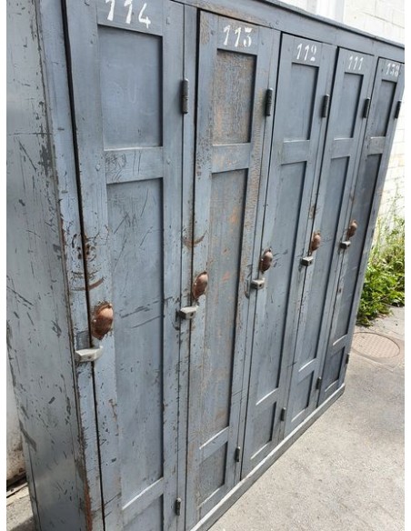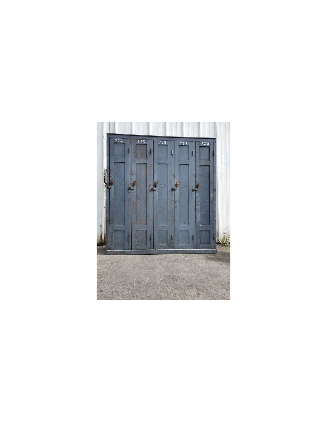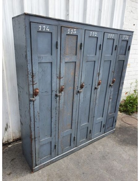 ancien vestiaire d'usine cinq portes en bois patine grise