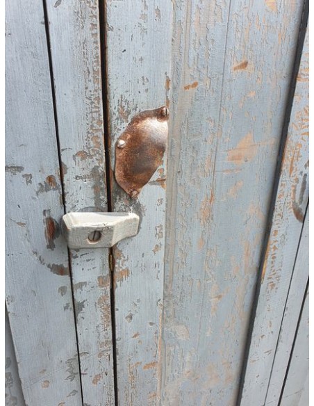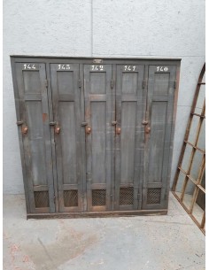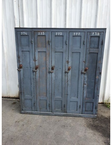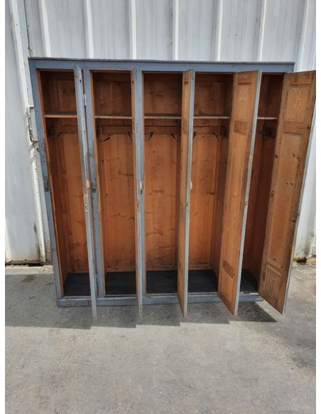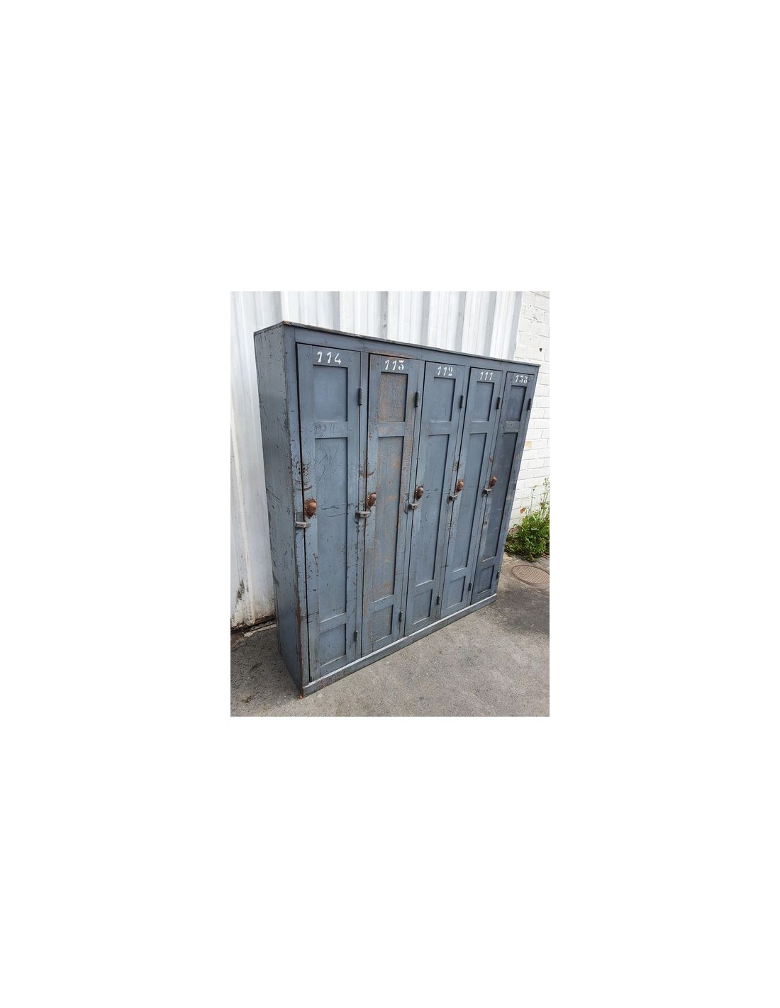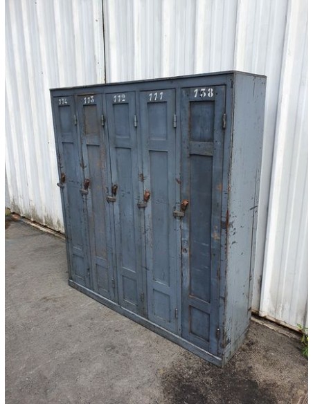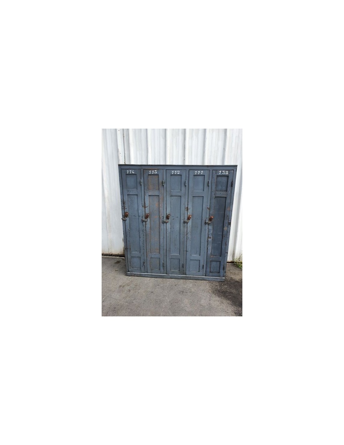 ancien vestiaire d'usine cinq portes en bois patine grise