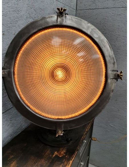 Ancien projecteur industriel Holophane Paris patine d'origine
