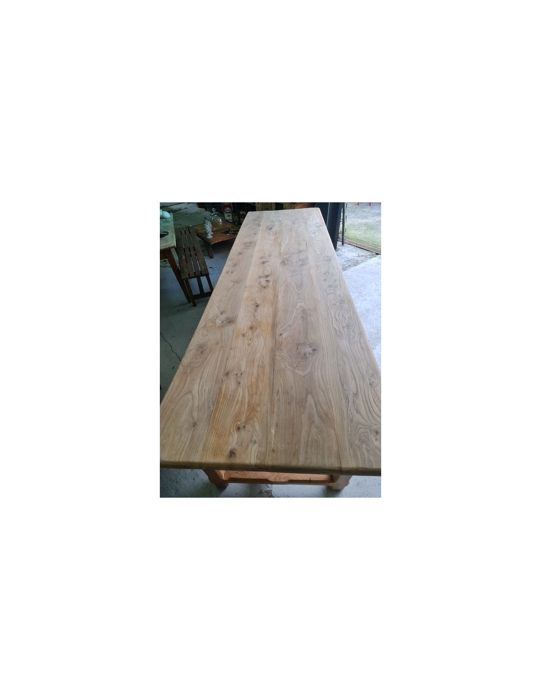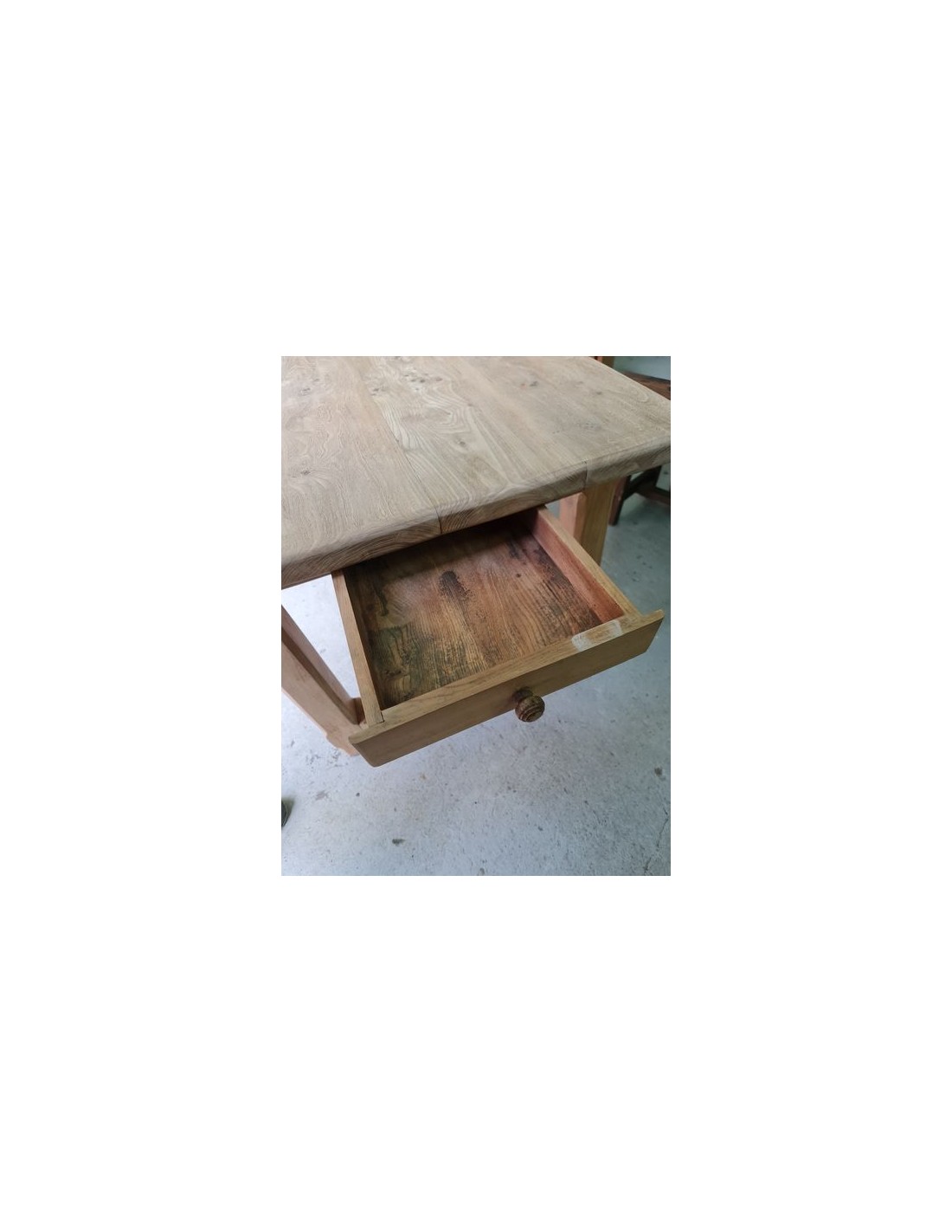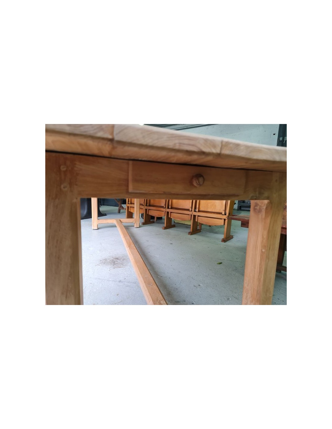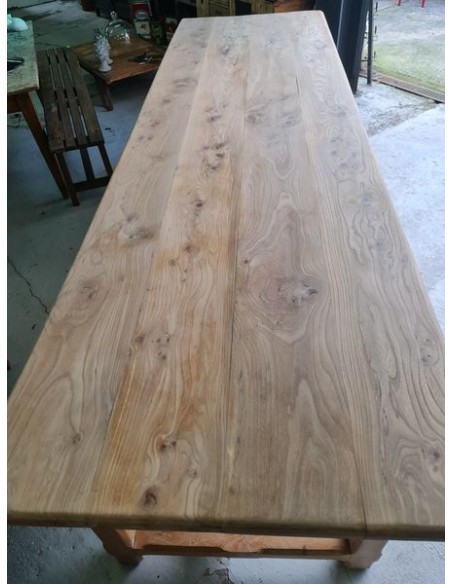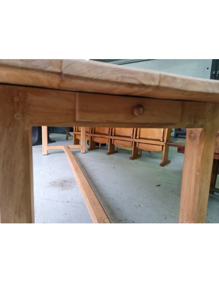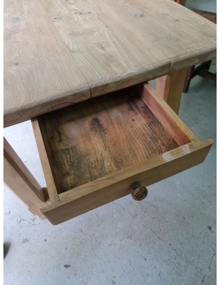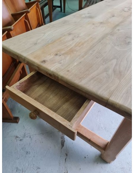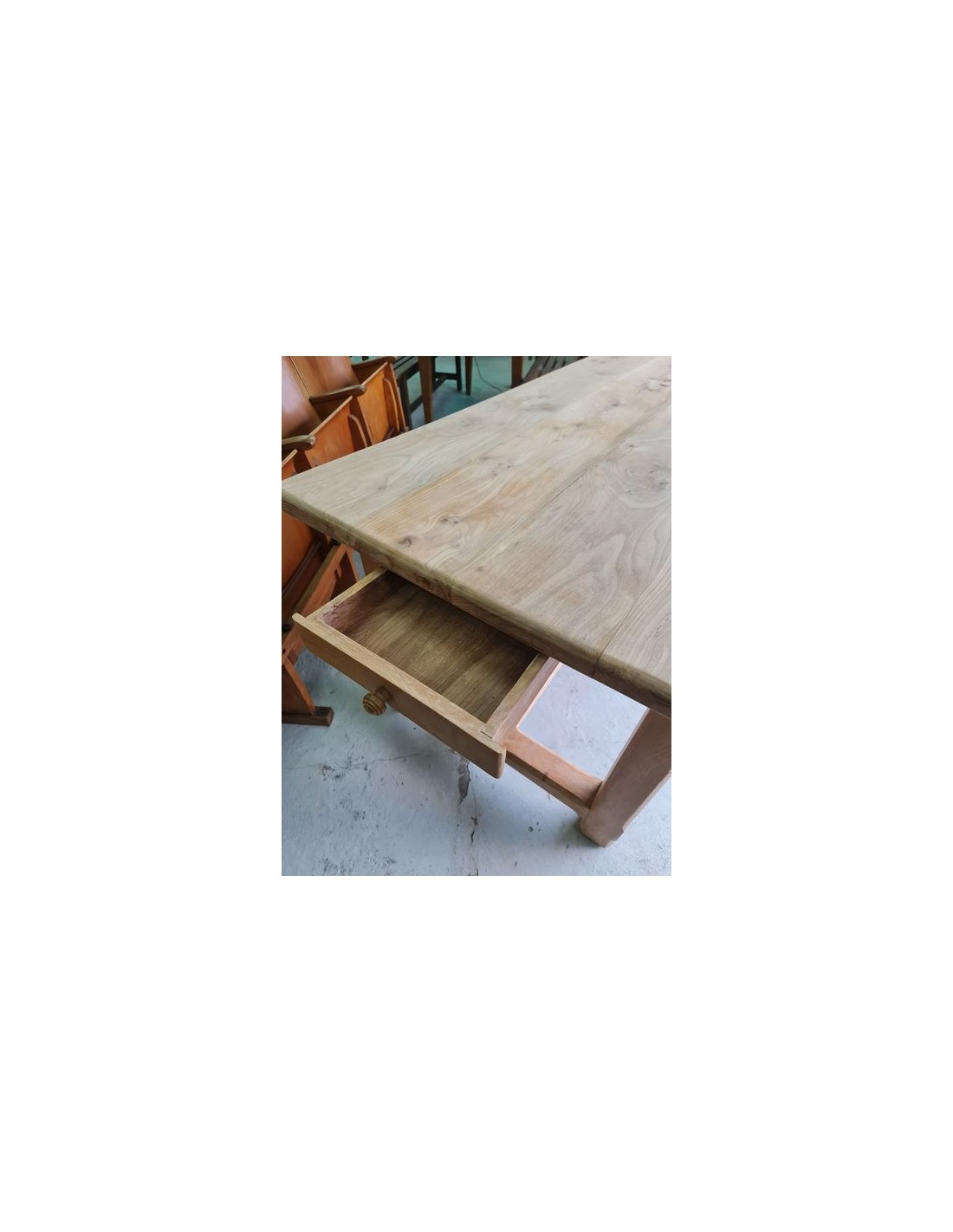 Grande table de ferme en orme brut avec un tiroirs de chaque coté