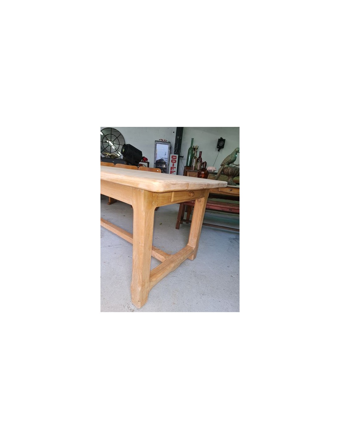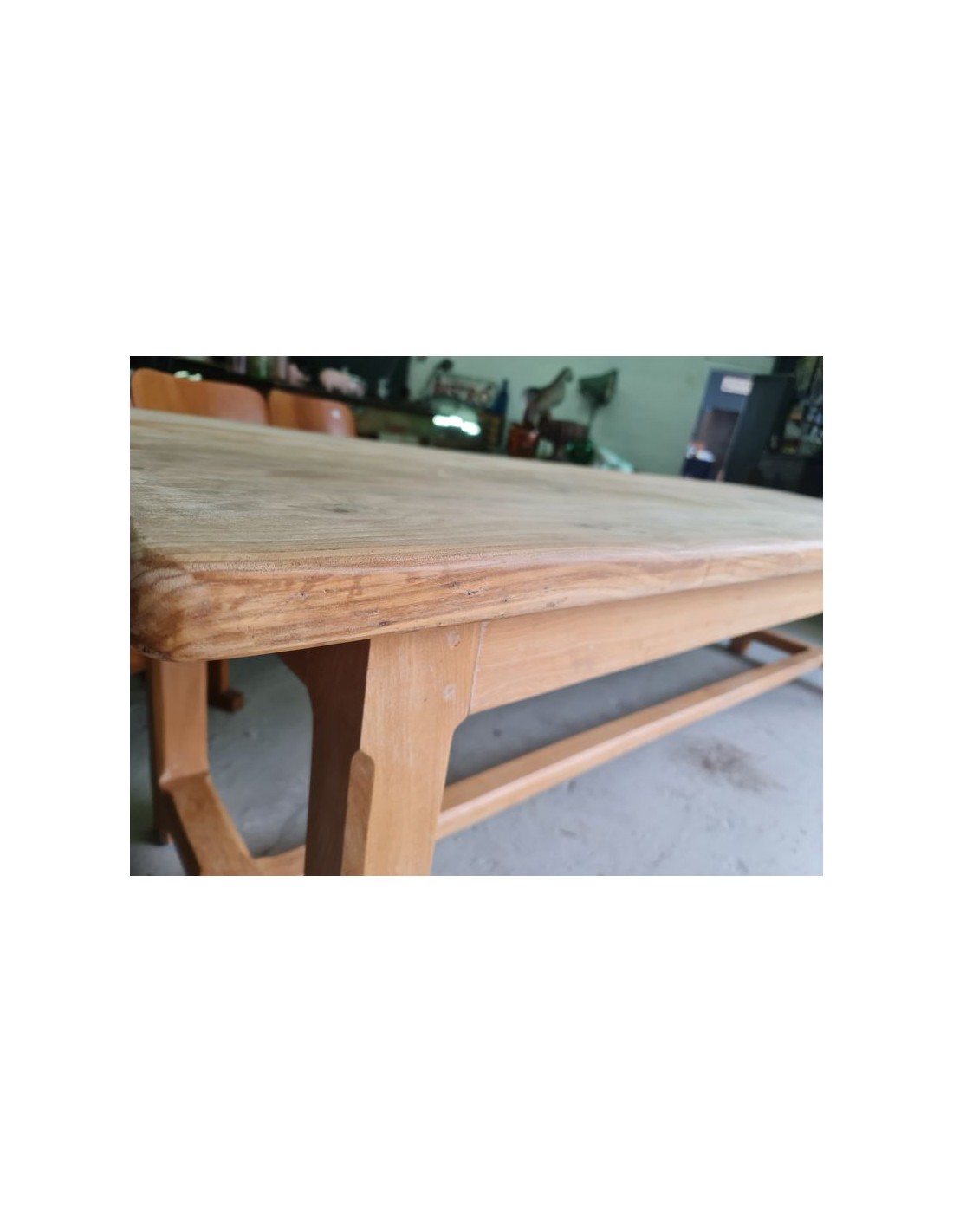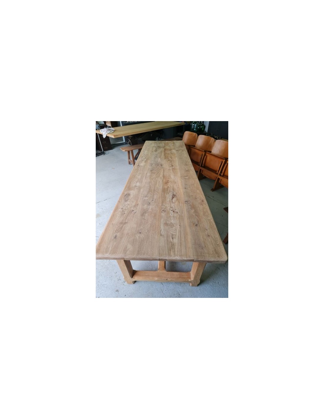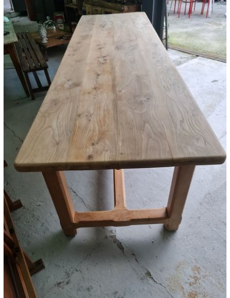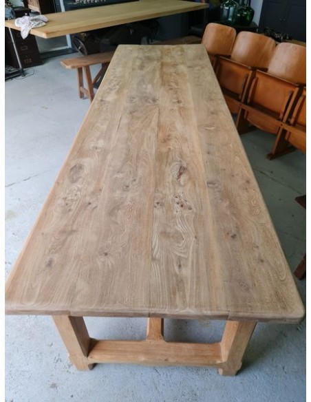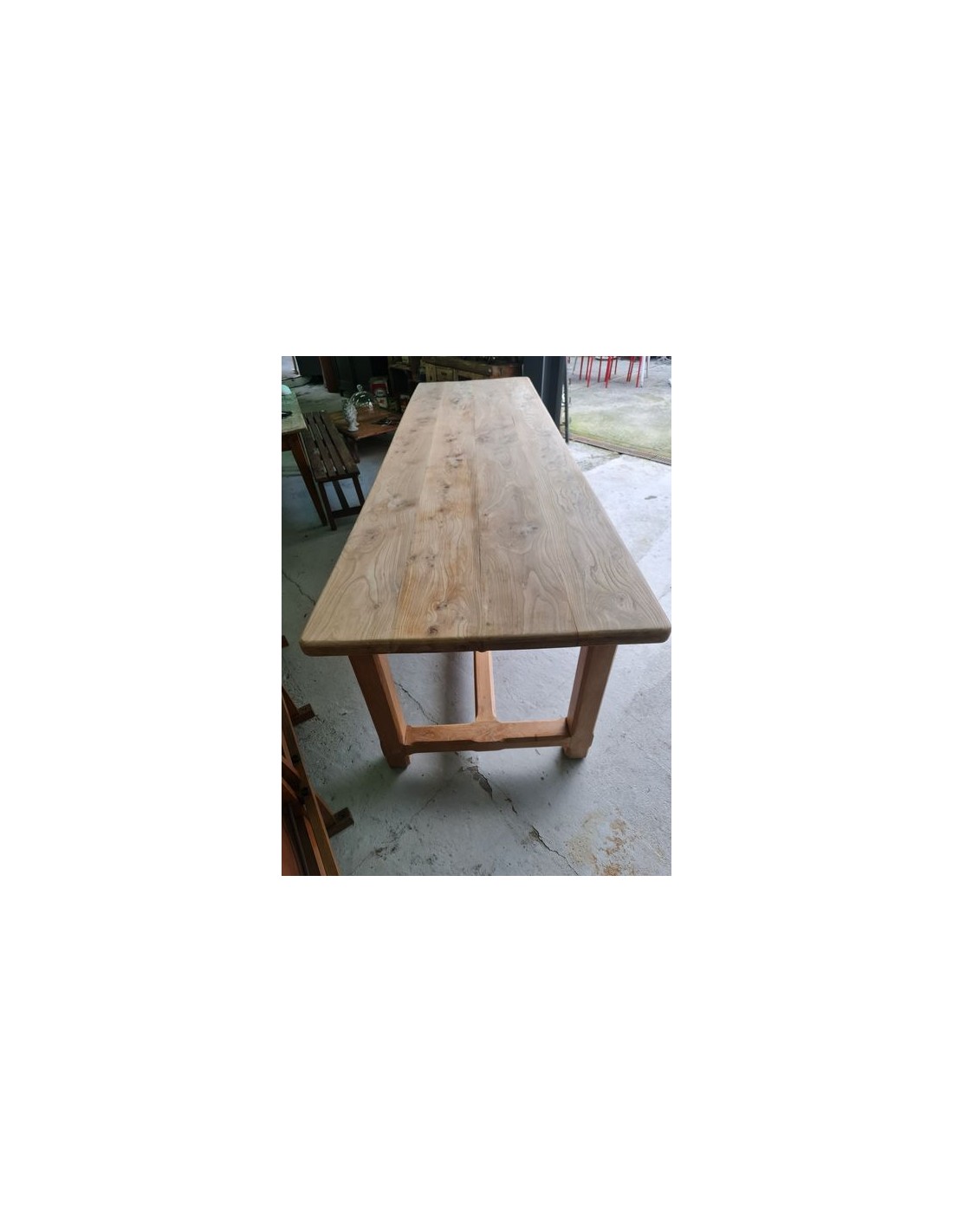 Grande table de ferme en orme brut avec un tiroirs de chaque coté