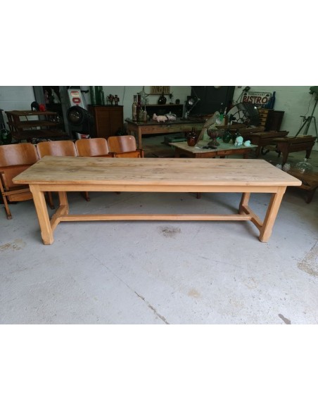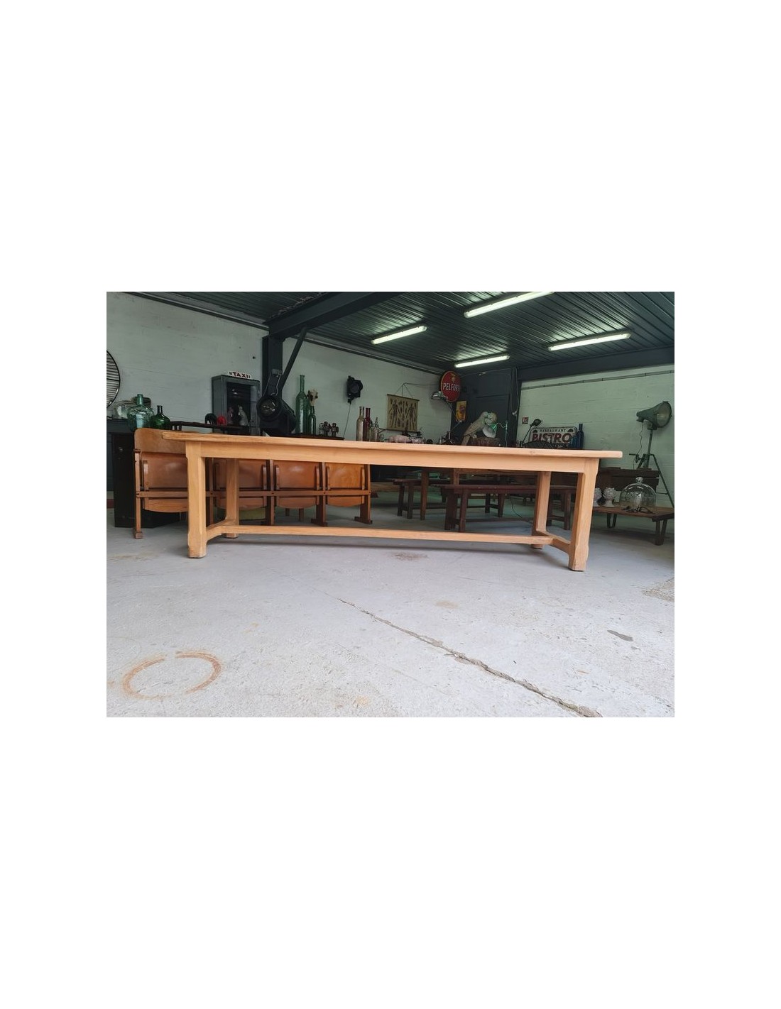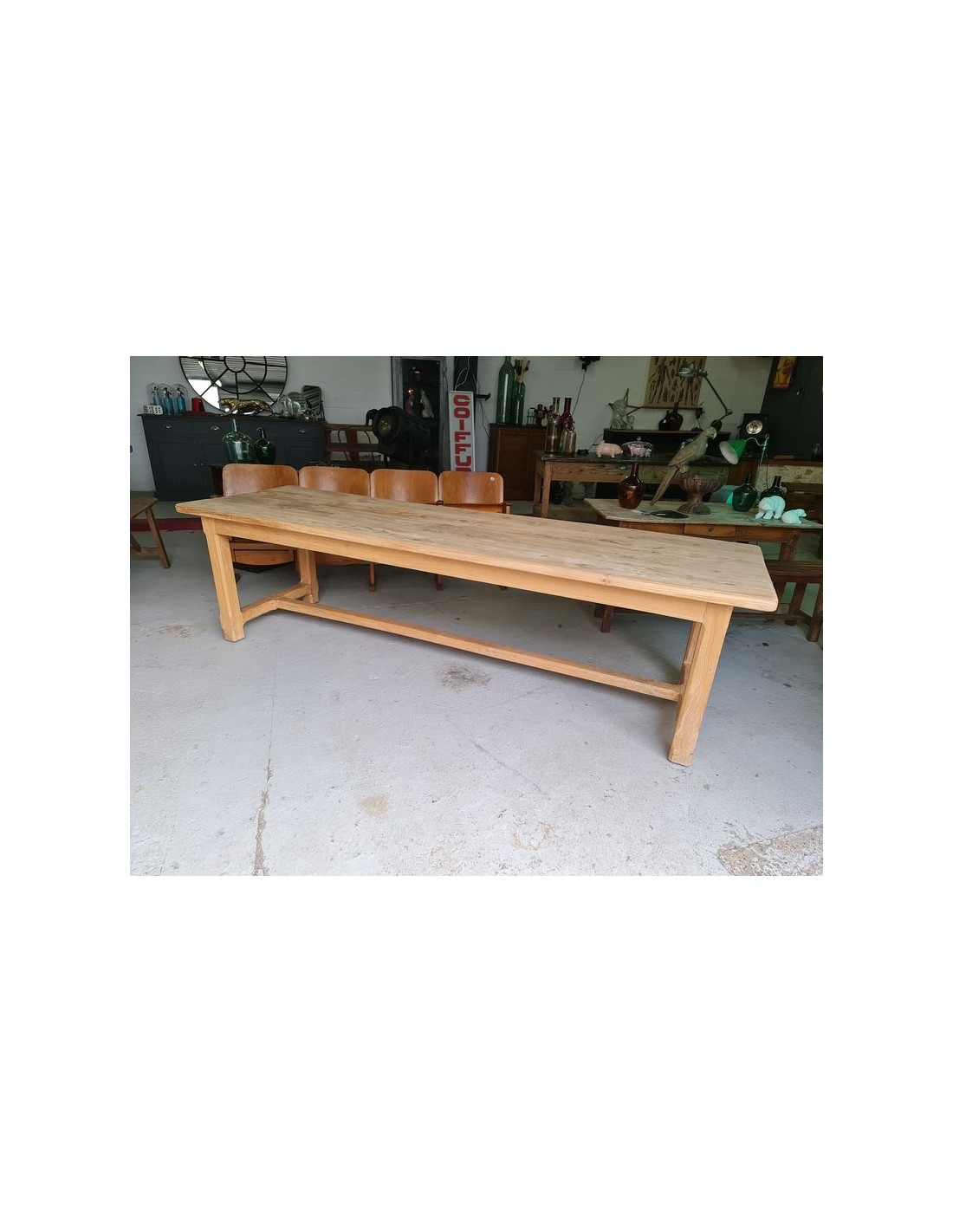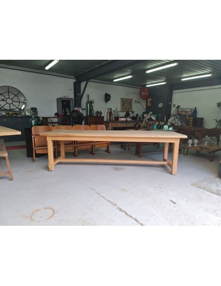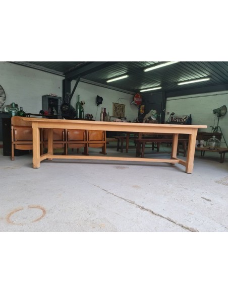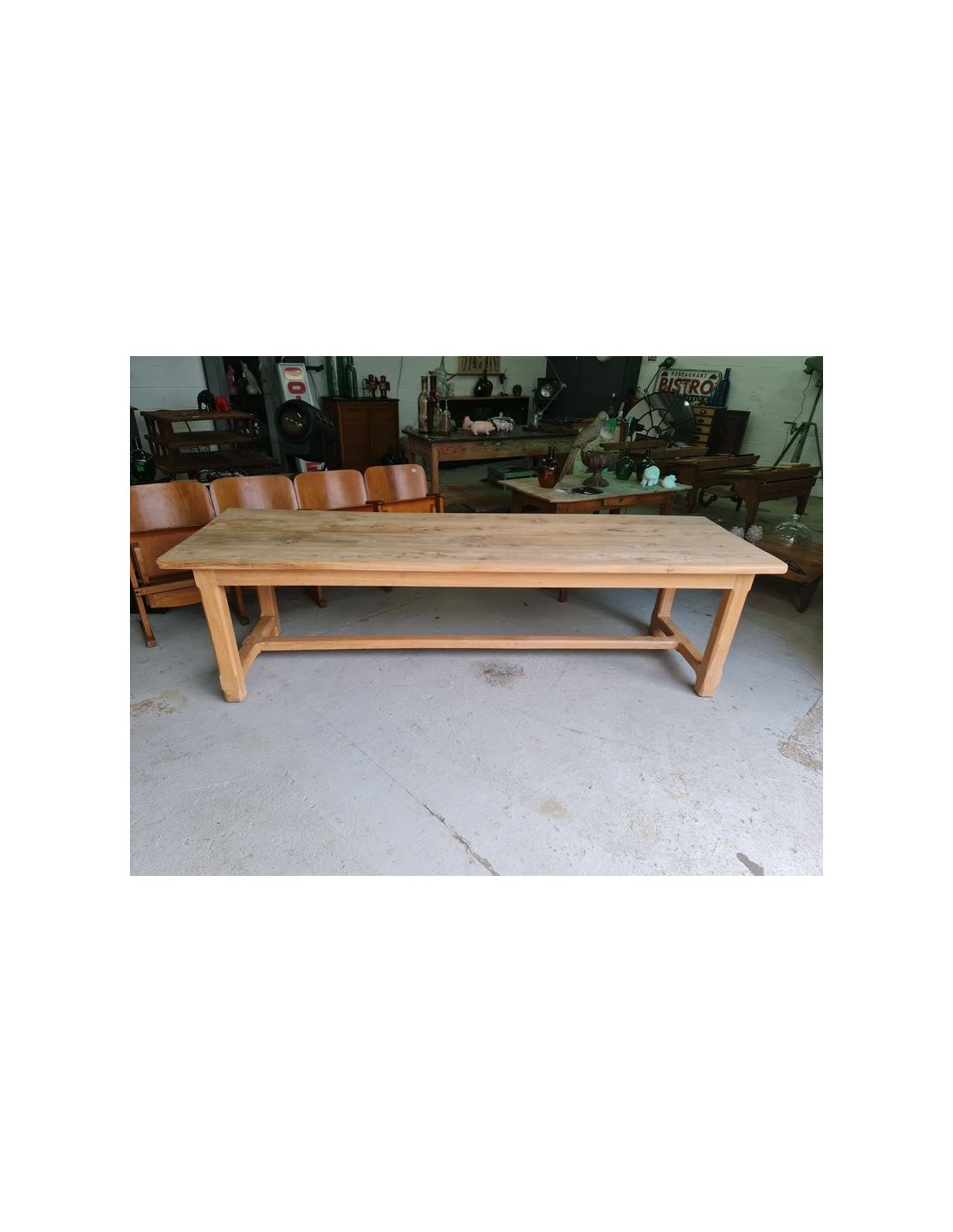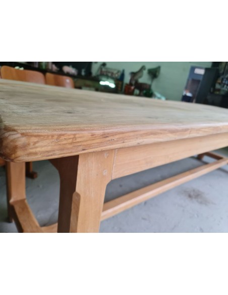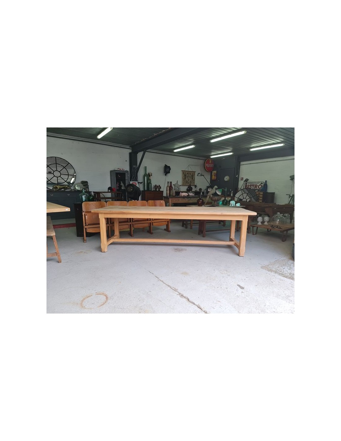 Grande table de ferme en orme brut avec un tiroirs de chaque coté