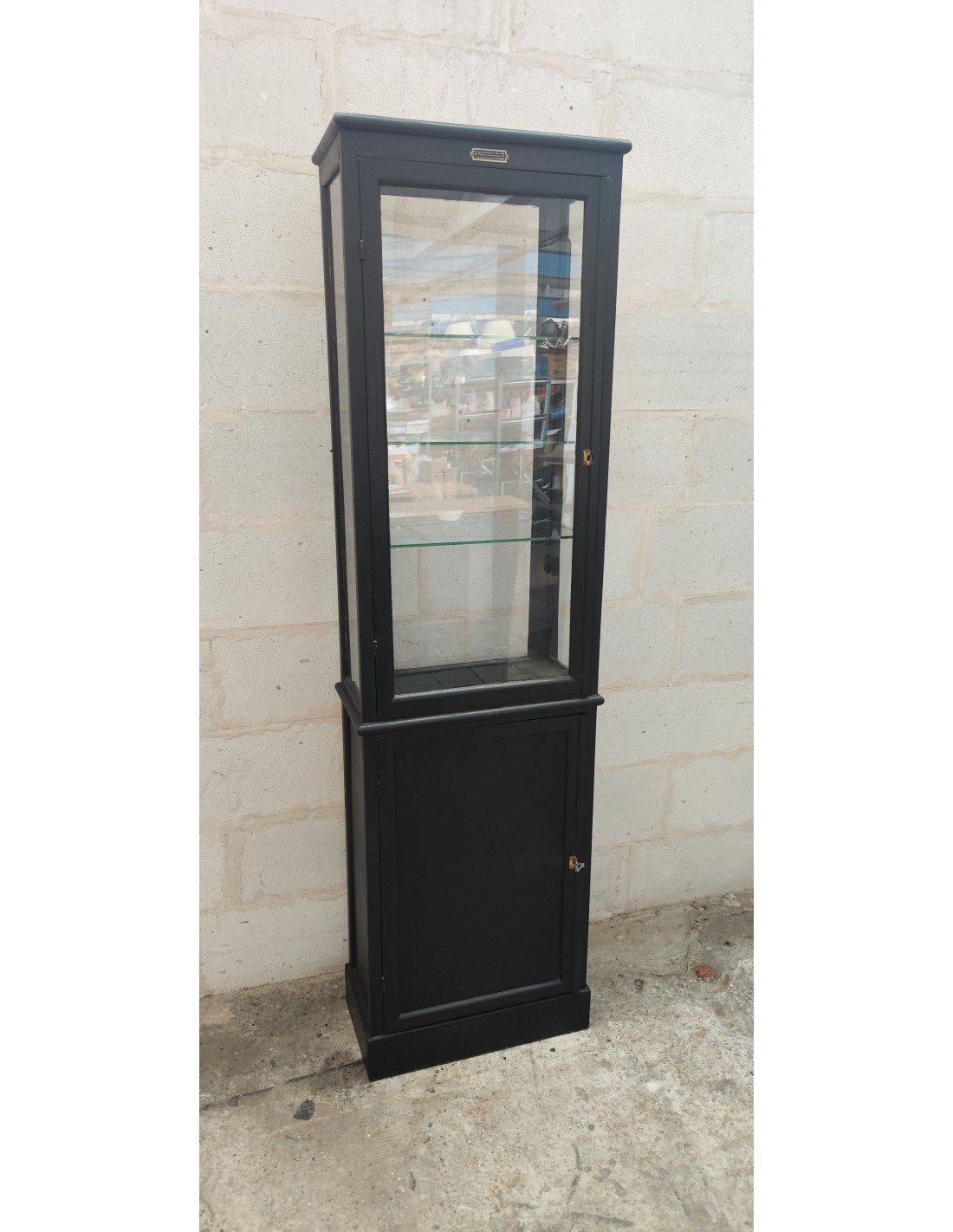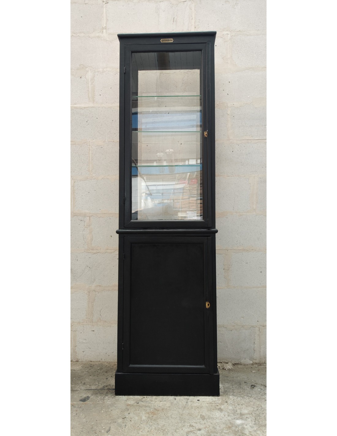 Ancienne vitrine de commerce deux portes patine noire
