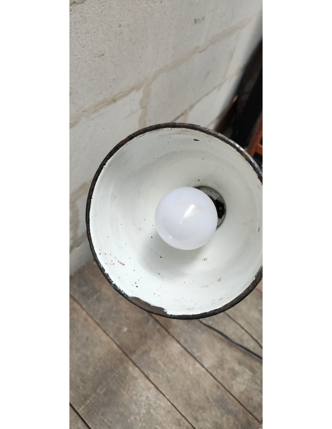 Ancienne lampe industrielle d'atelier deux bras globe émail vert