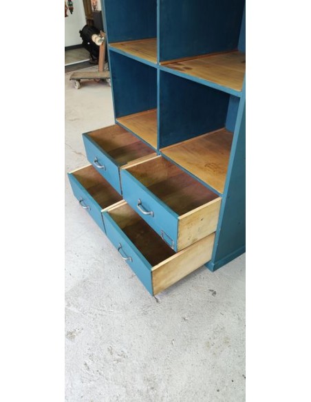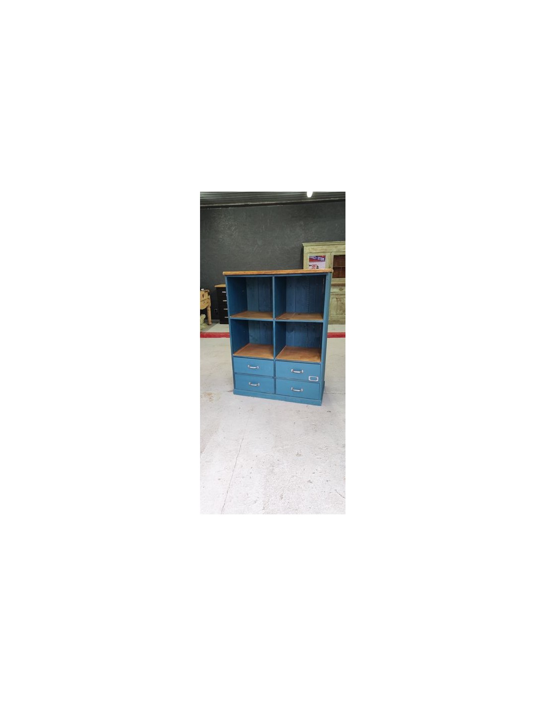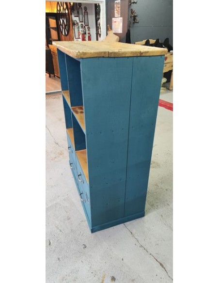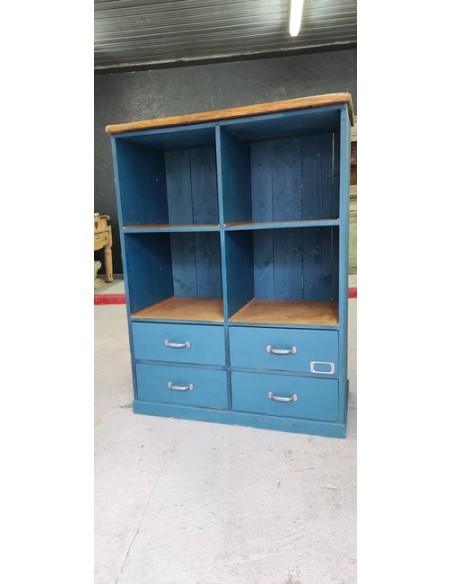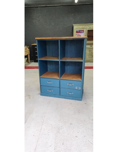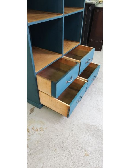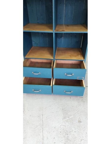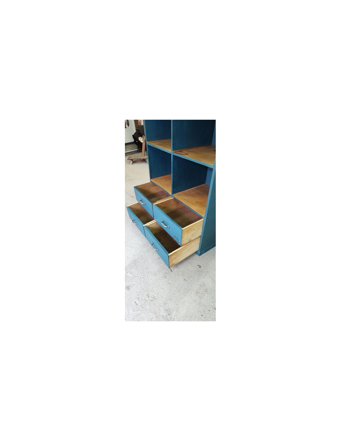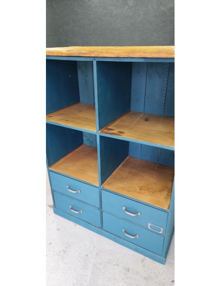Patine d'origine et étagère façon 4 caissons décapé et ciré largeur 47 cm