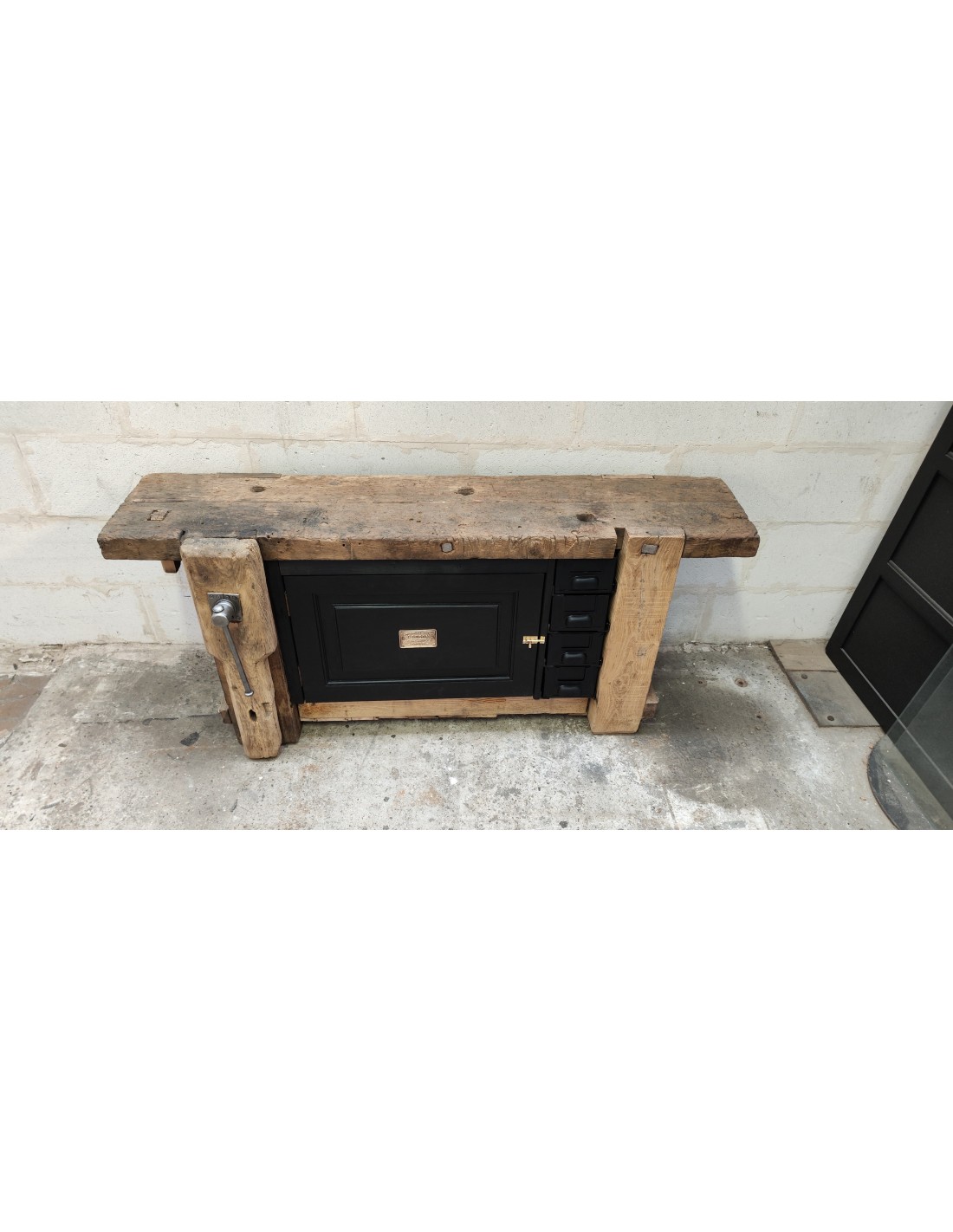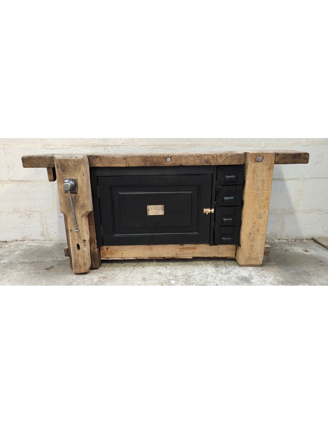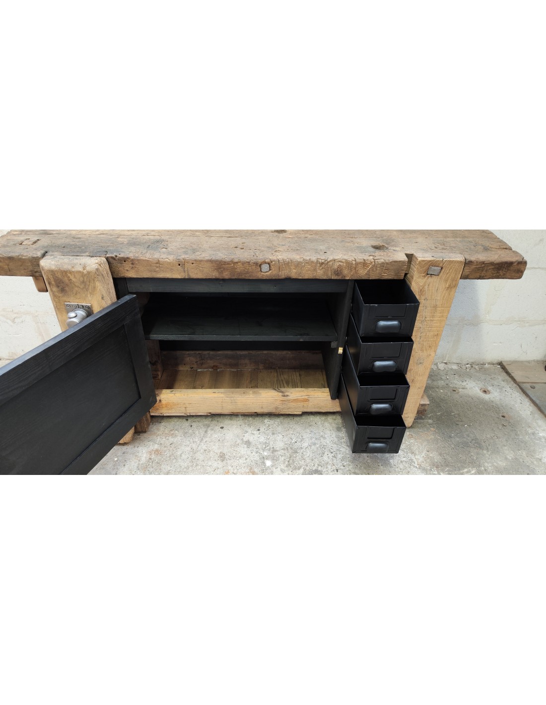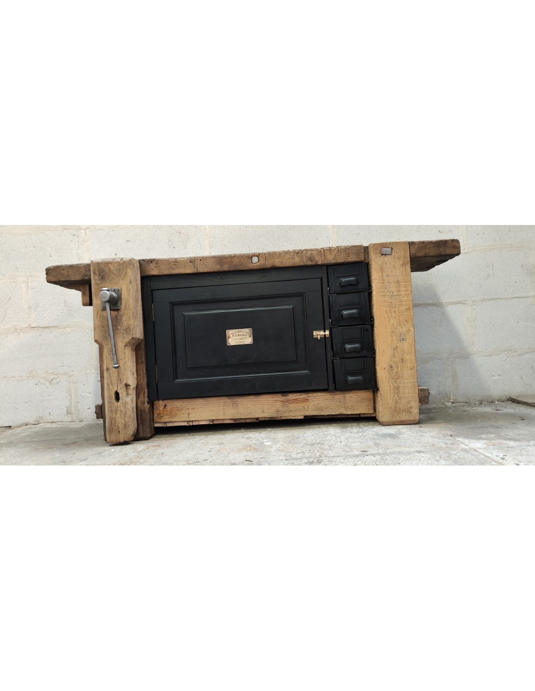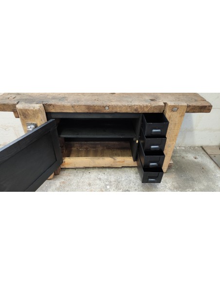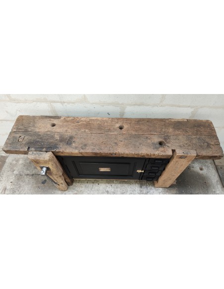 Ancien établi d'atelier de Lille une porte et quatre tiroirs