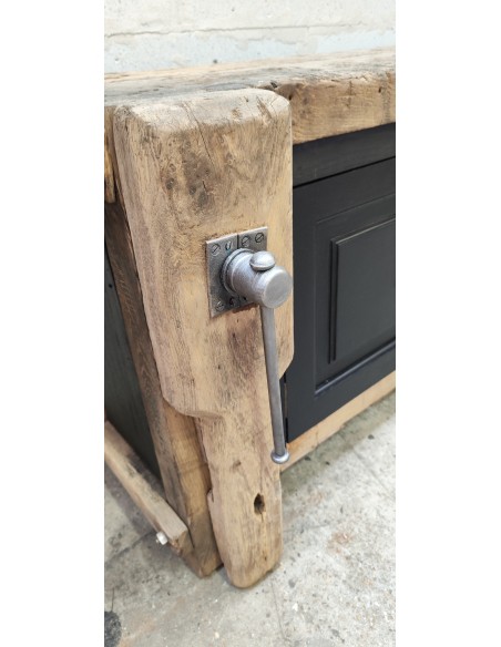 Ancien joli établi tout en chêne et pin entièrement restauré