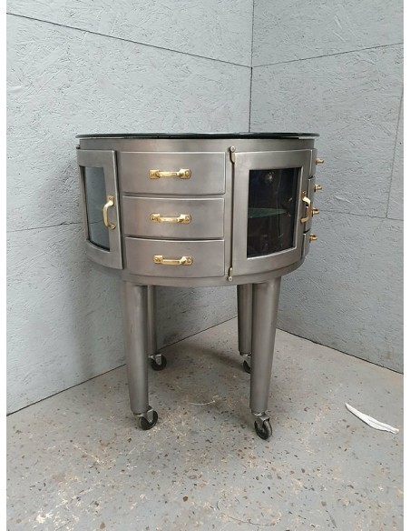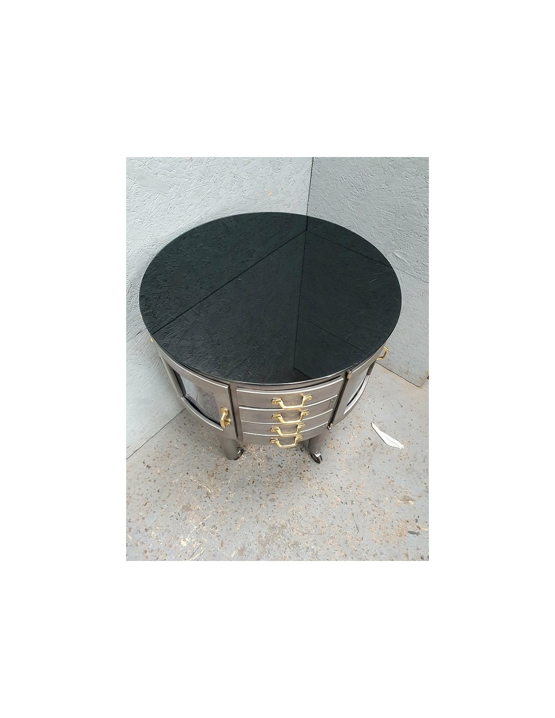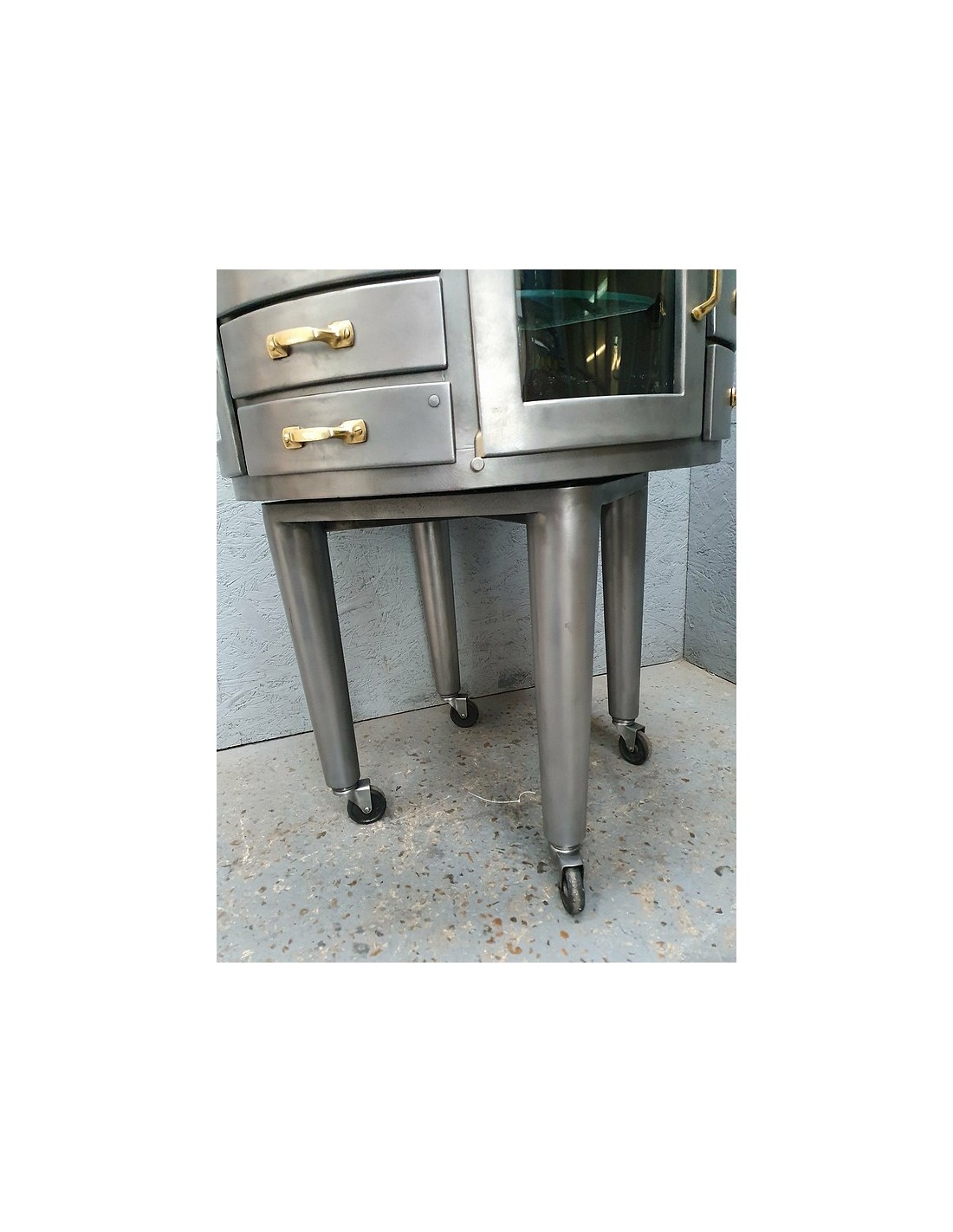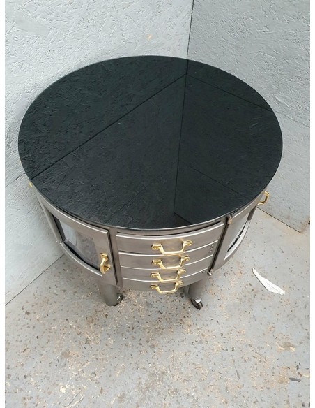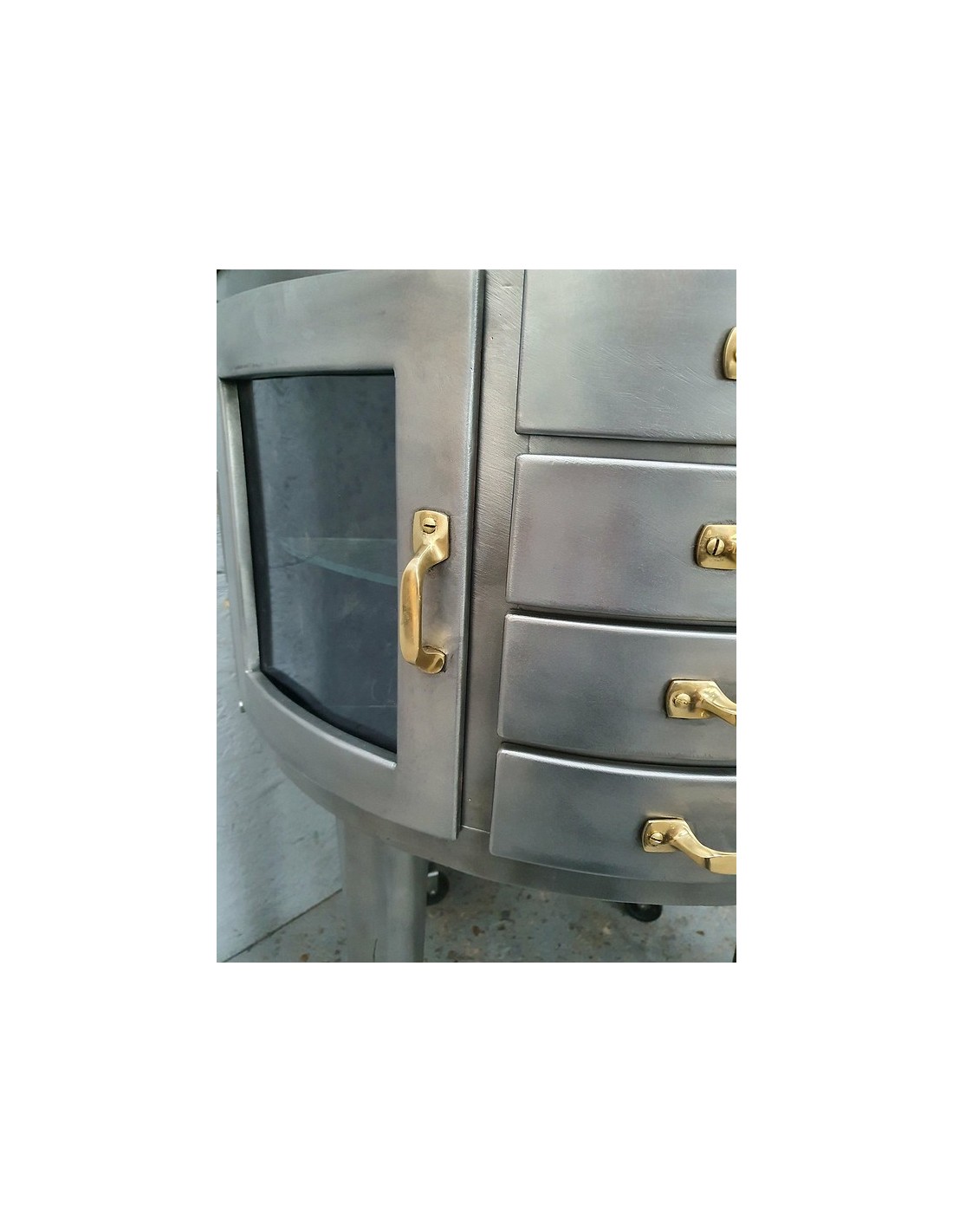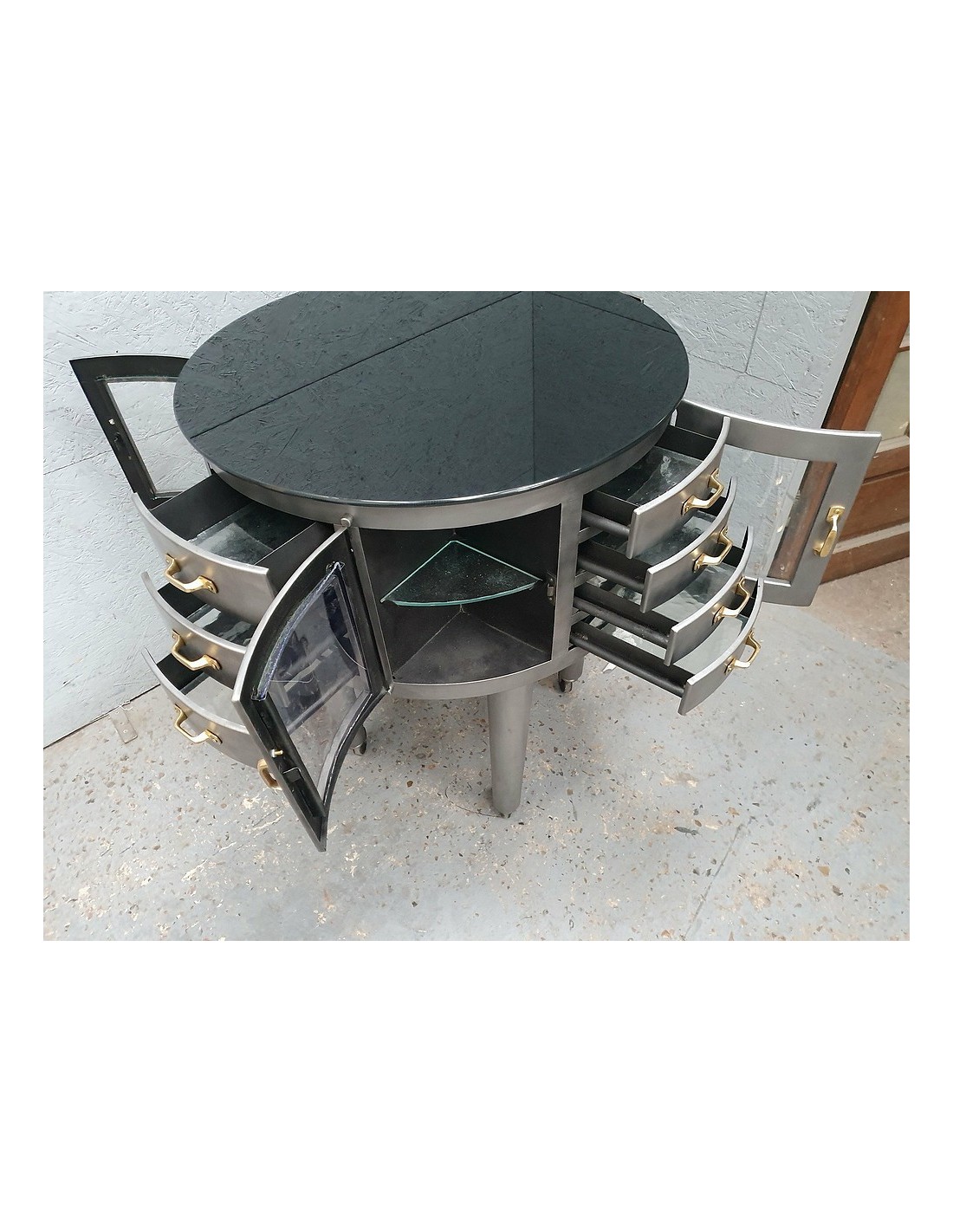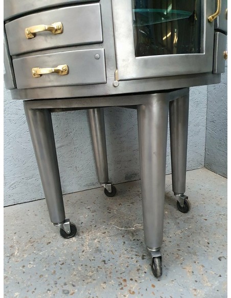 Ancien meuble de dentiste Girator en métal patine graphite.