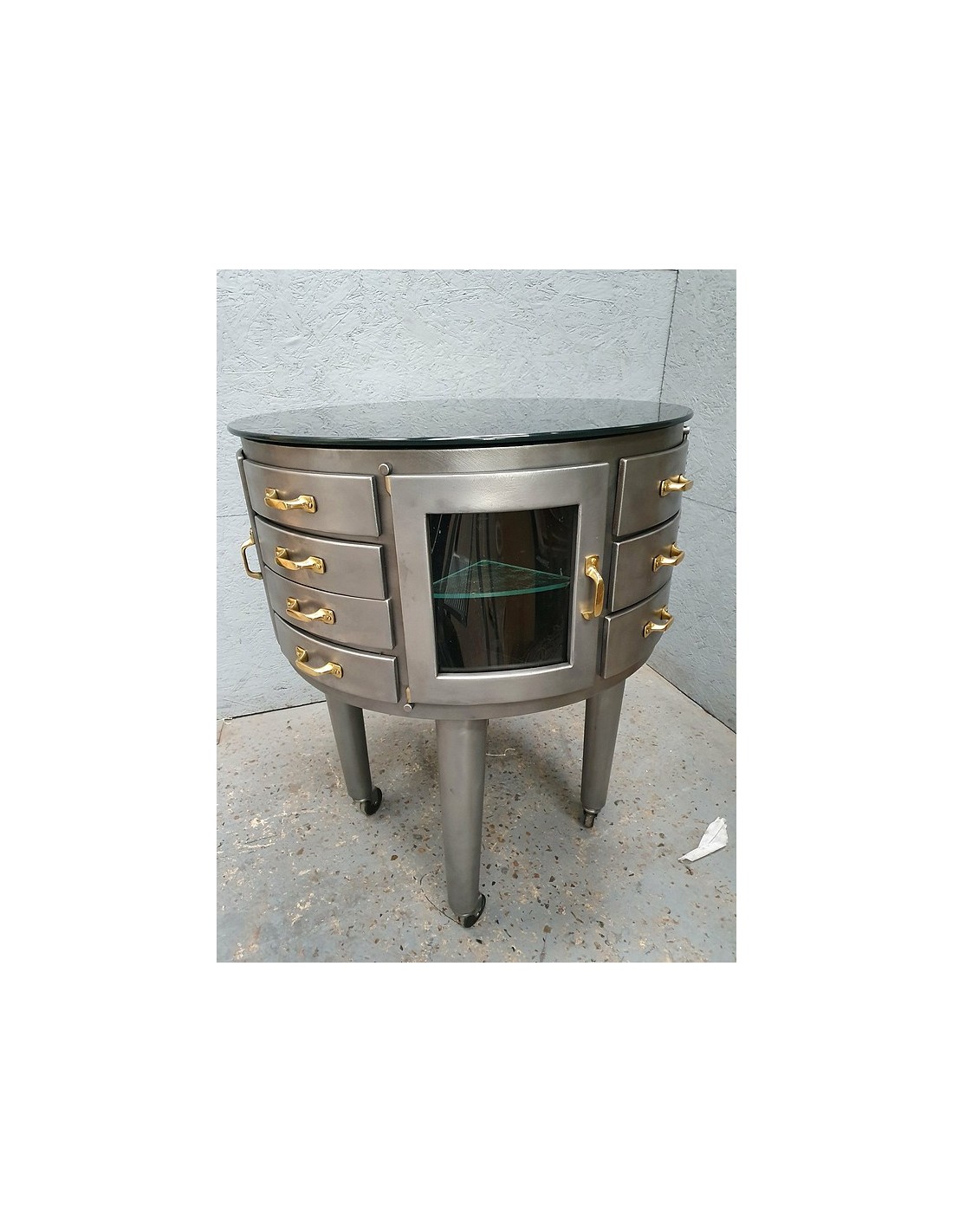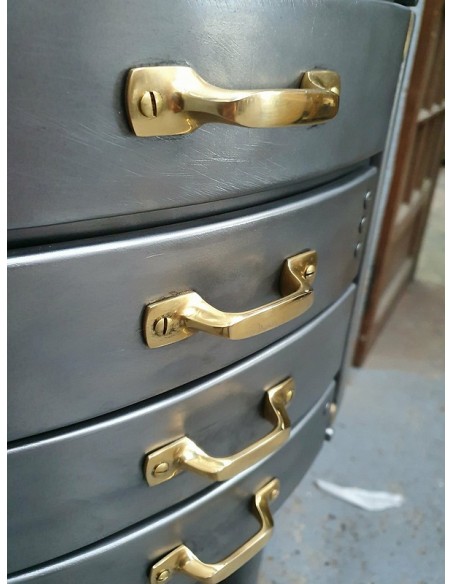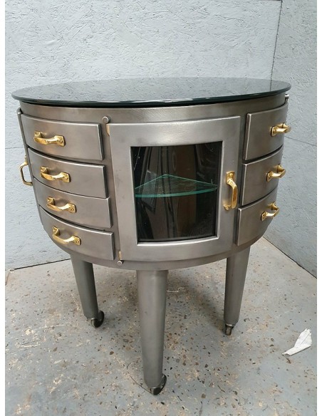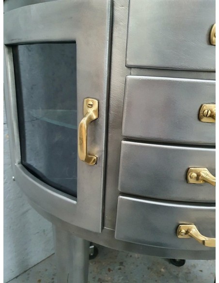 14 tiroirs et 4 portes (2 avec verre bombé d'origine et deux en verre synthétique cintré)