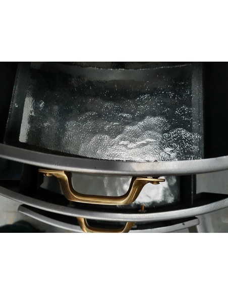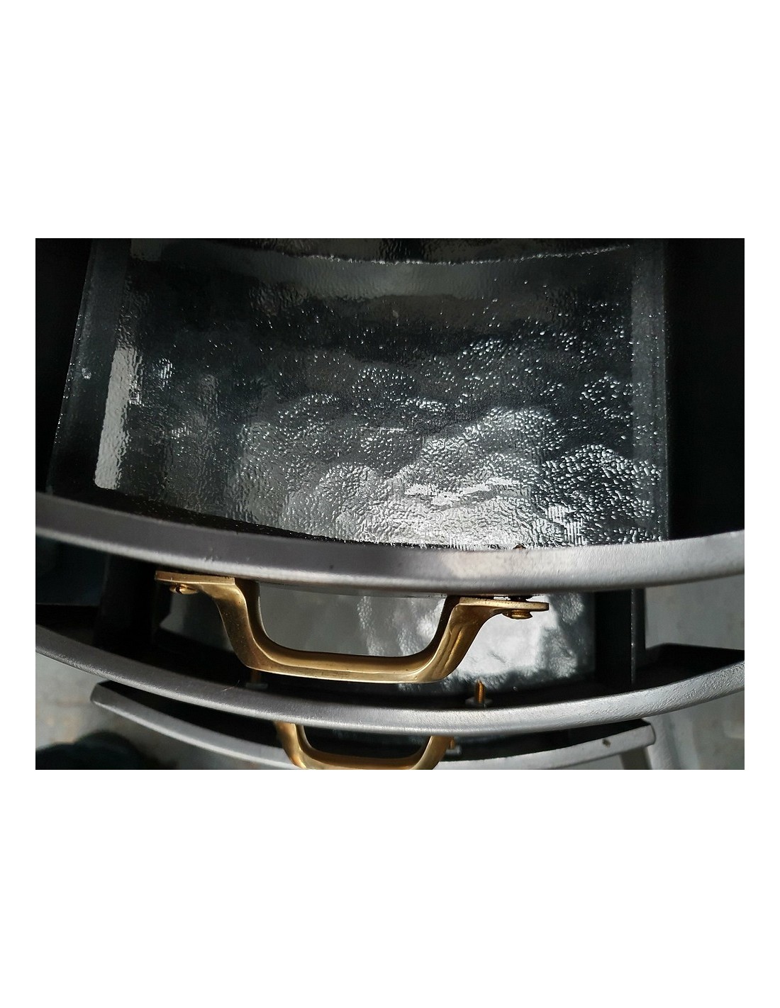 Poignées en laiton. Le corps pivote indépendamment du piétement et du plateau.