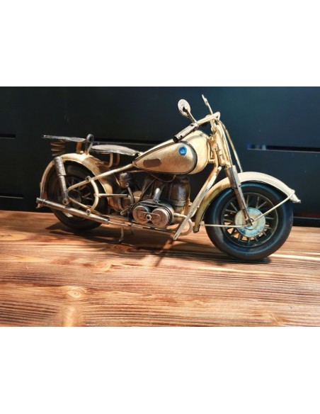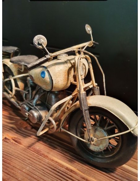 Moto blanche tôle décoration métal vintage long 32 cm