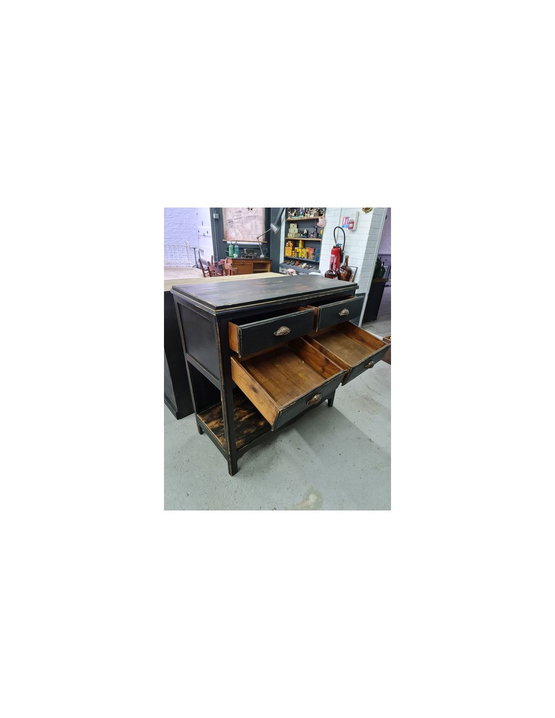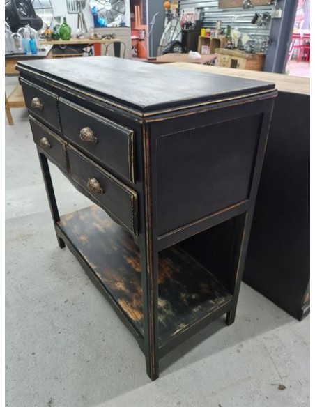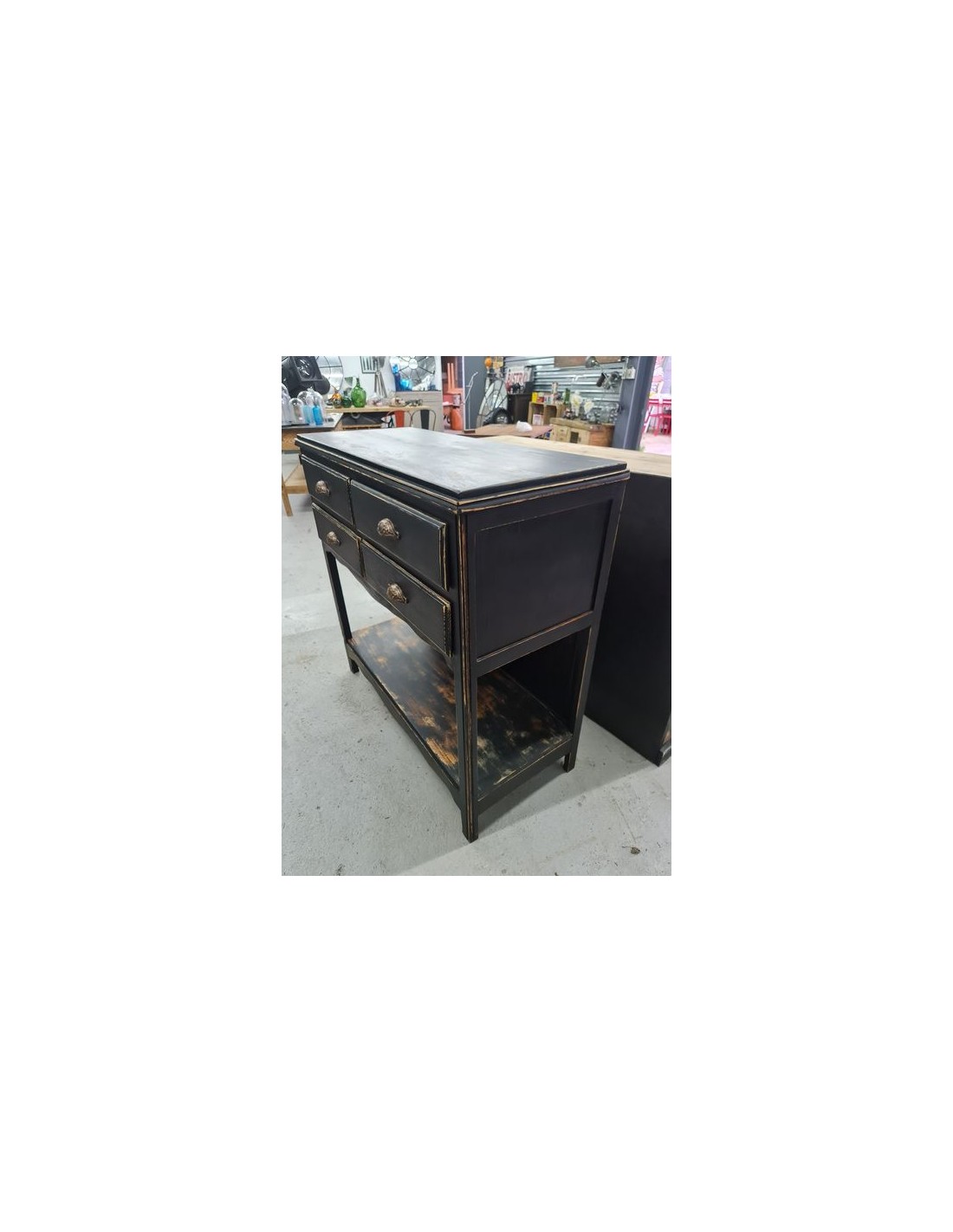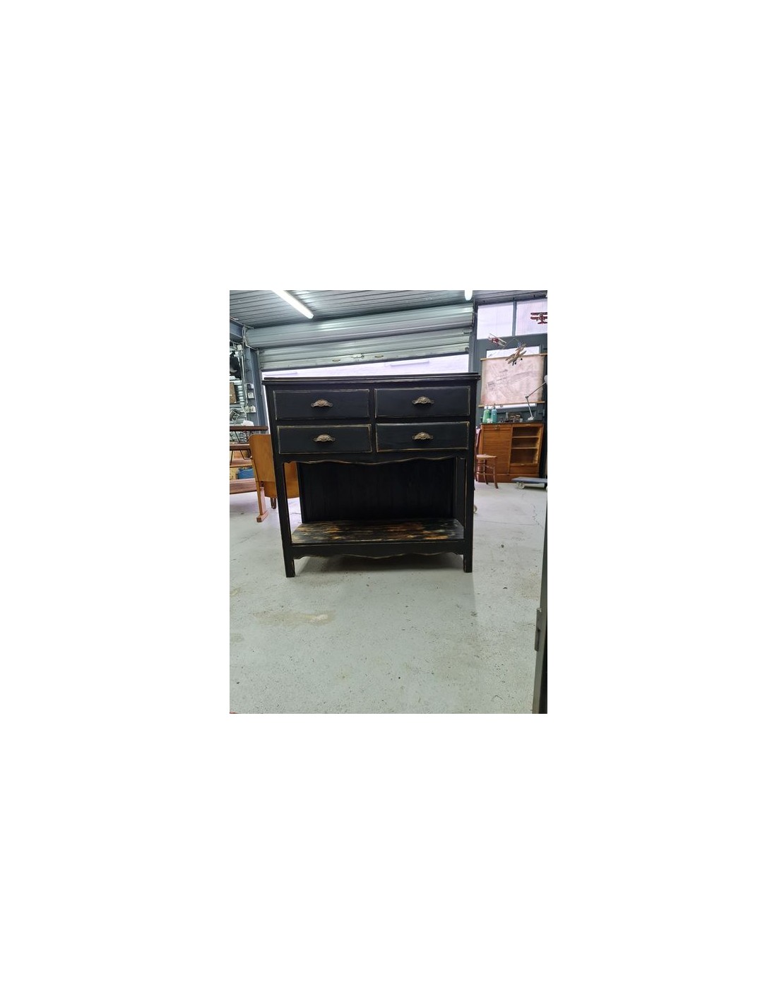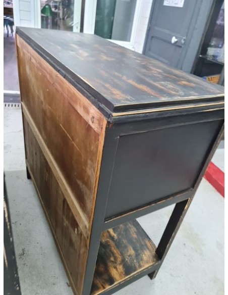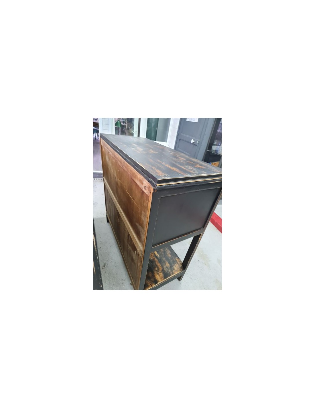 Meuble industriel quatre tiroirs desserte bois patine noire