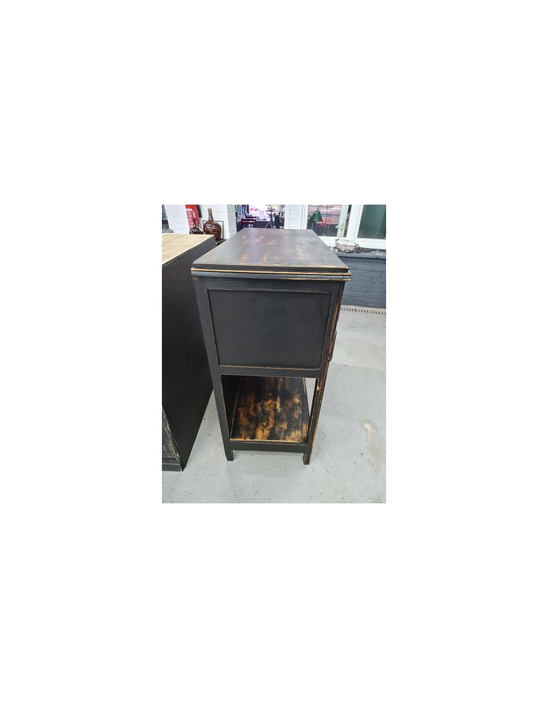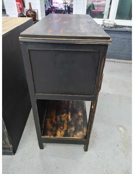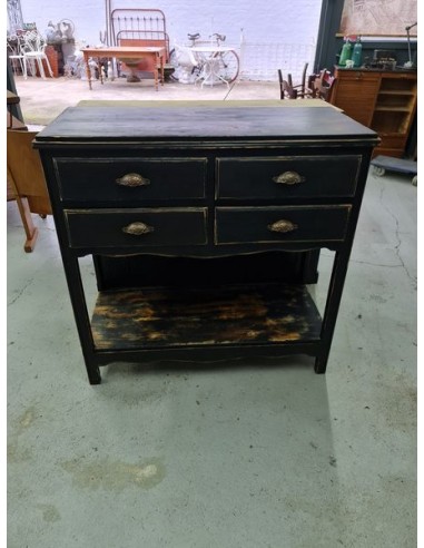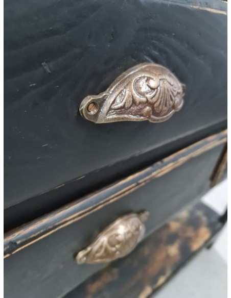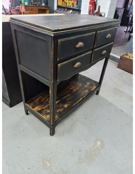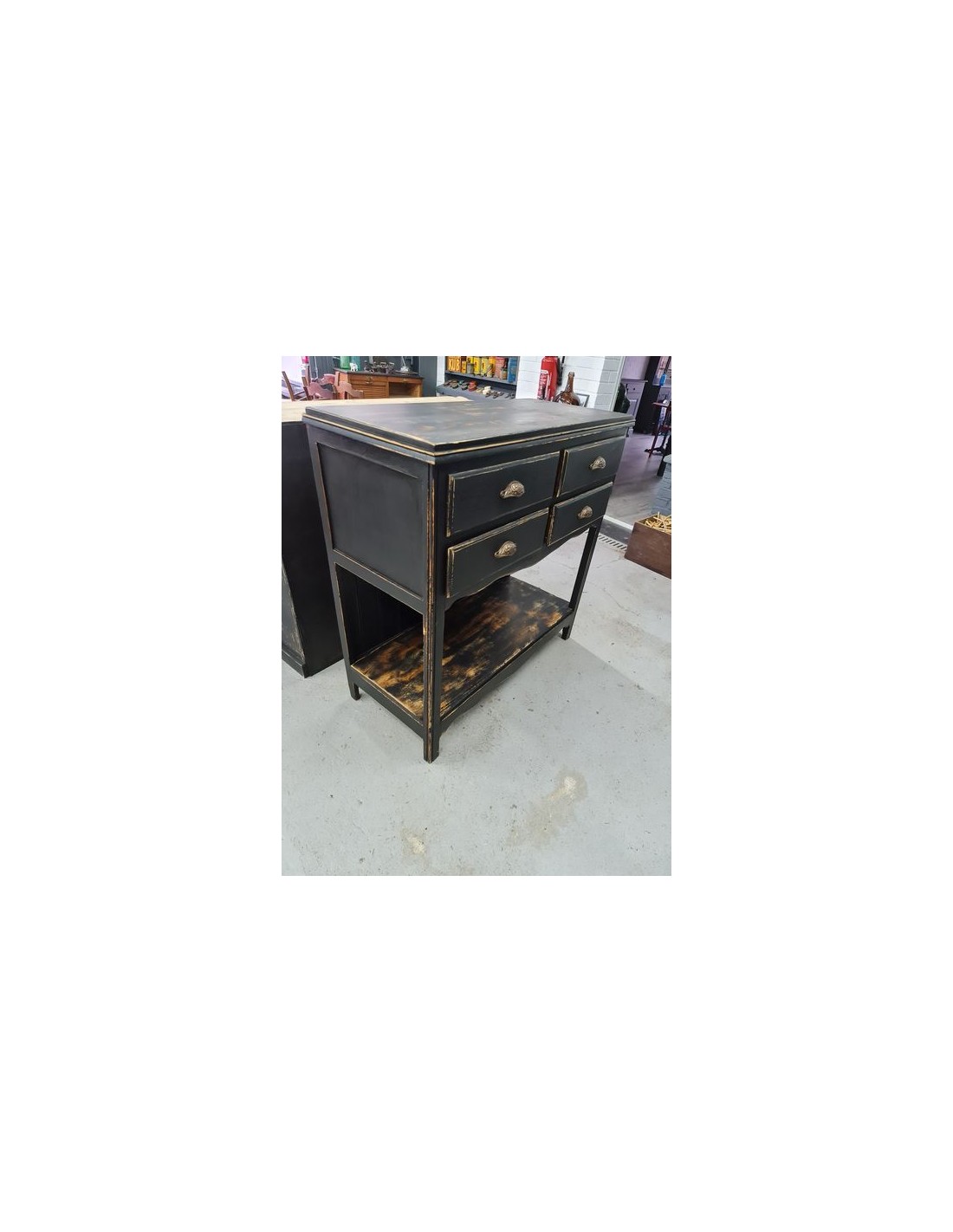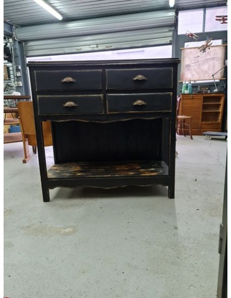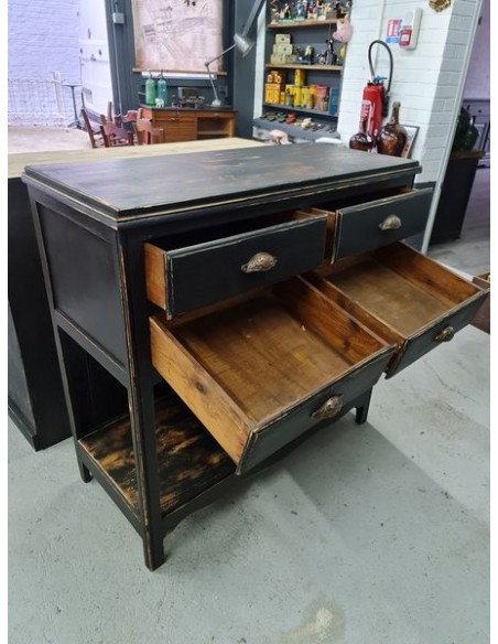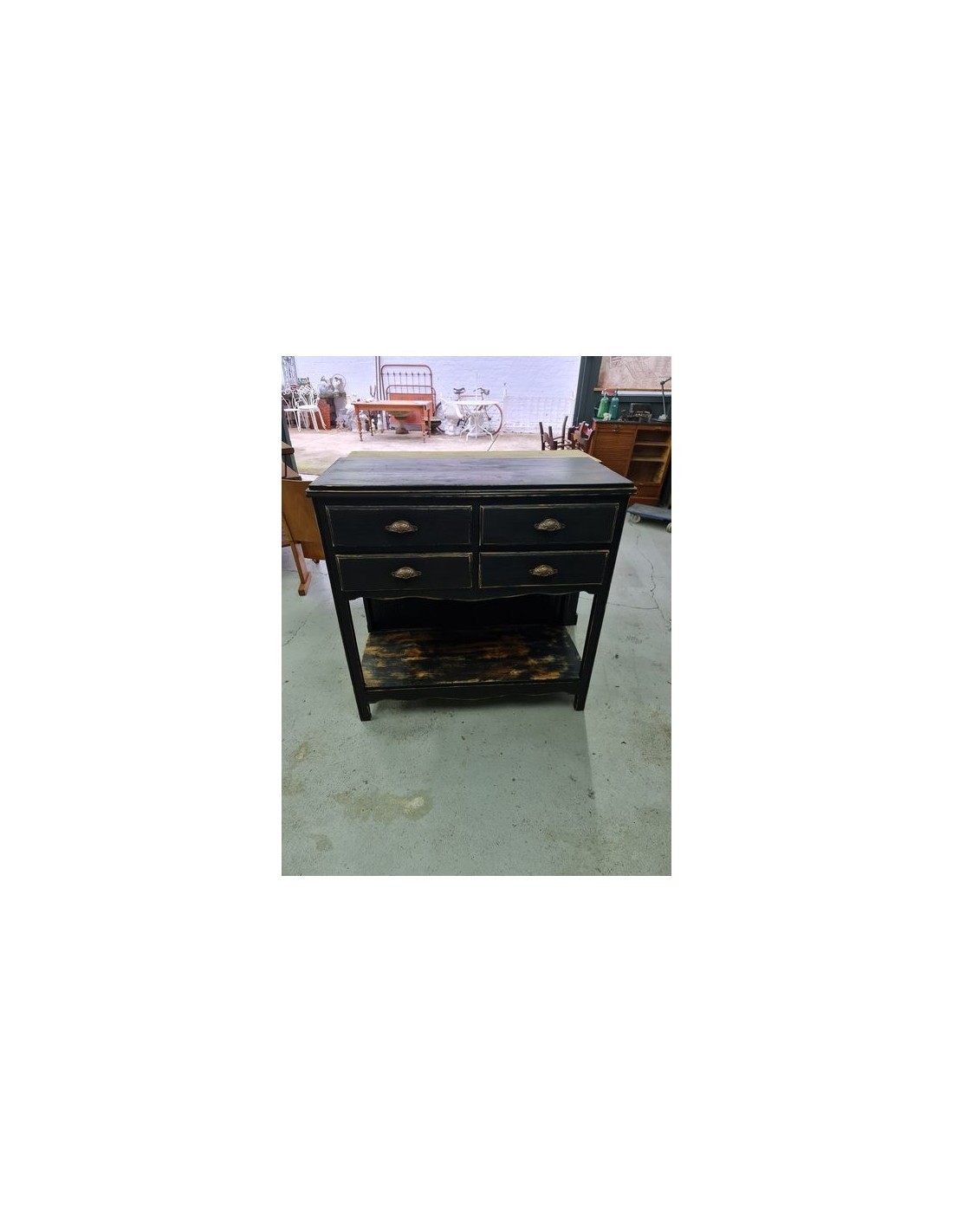 Meuble industriel quatre tiroirs desserte bois patine noire
