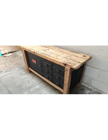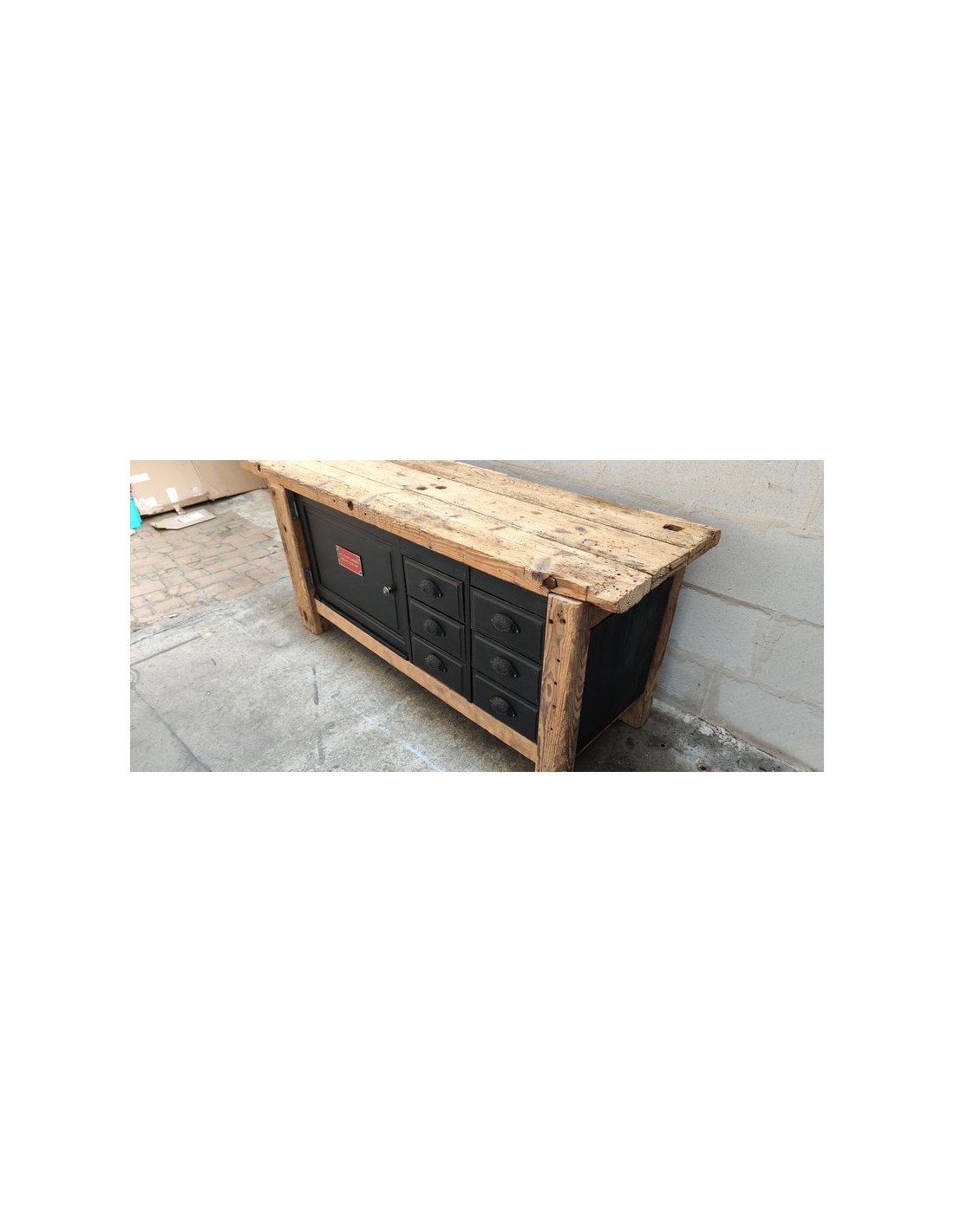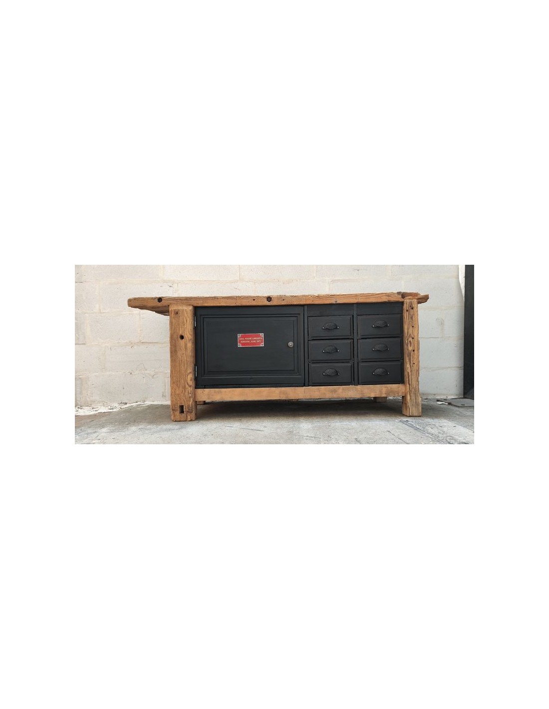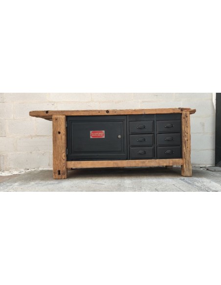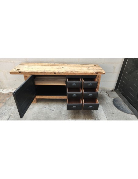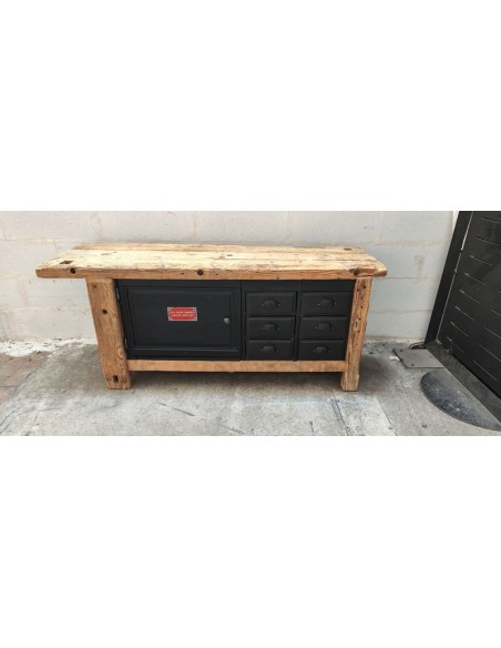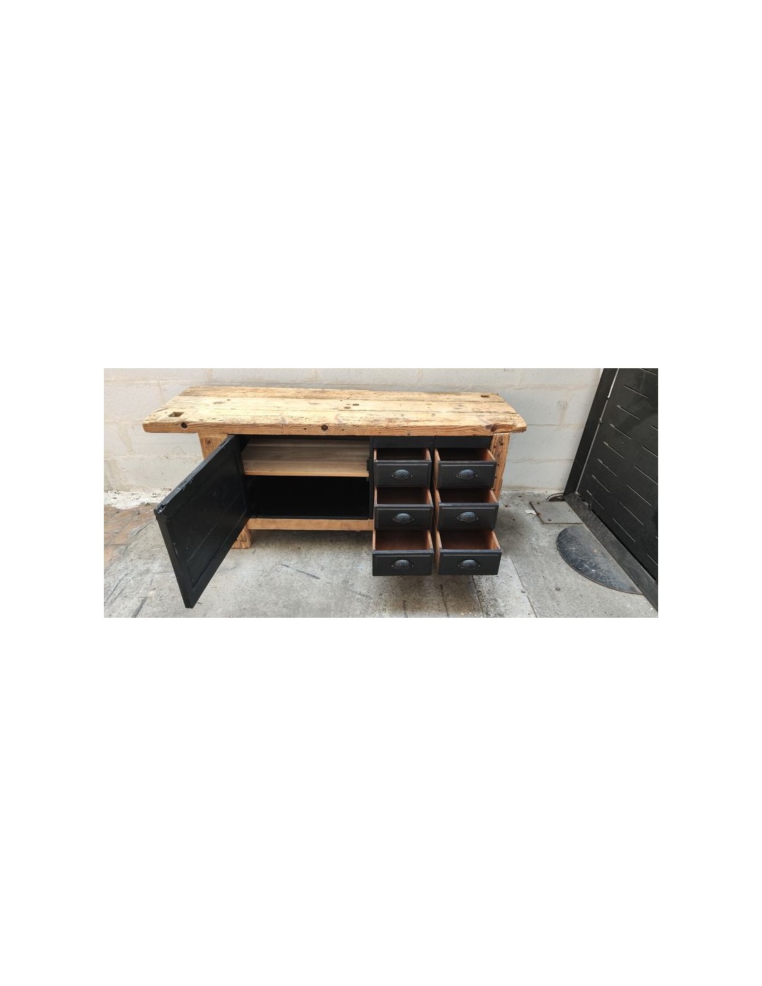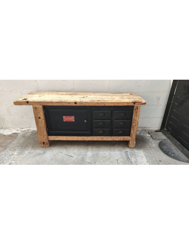 Ancien établi de menuisier meuble de métier une porte et six tiroirs