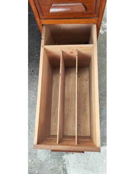Intérieur avec étagère avec plusieurs case de rangement et deux tiroirs
