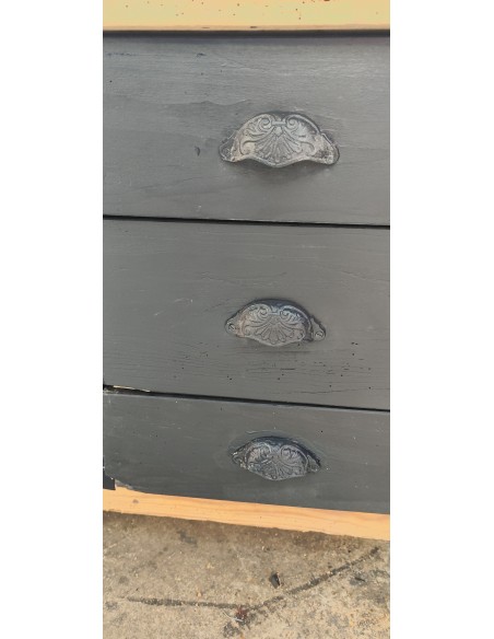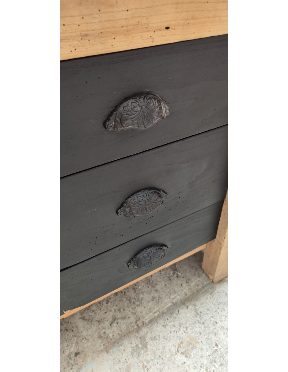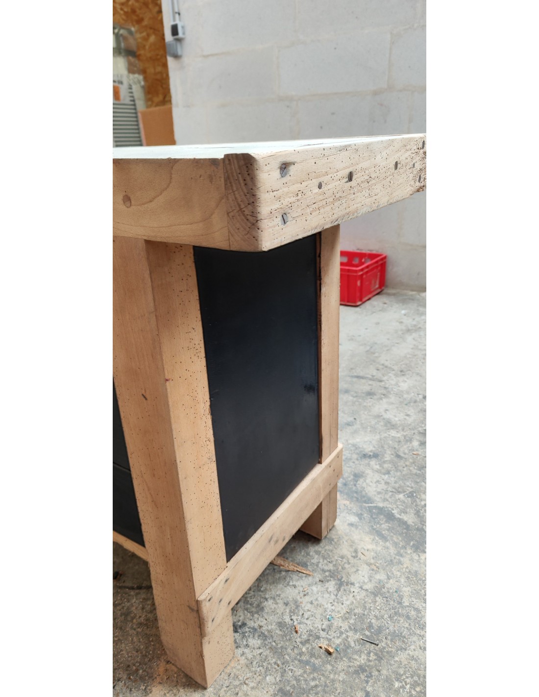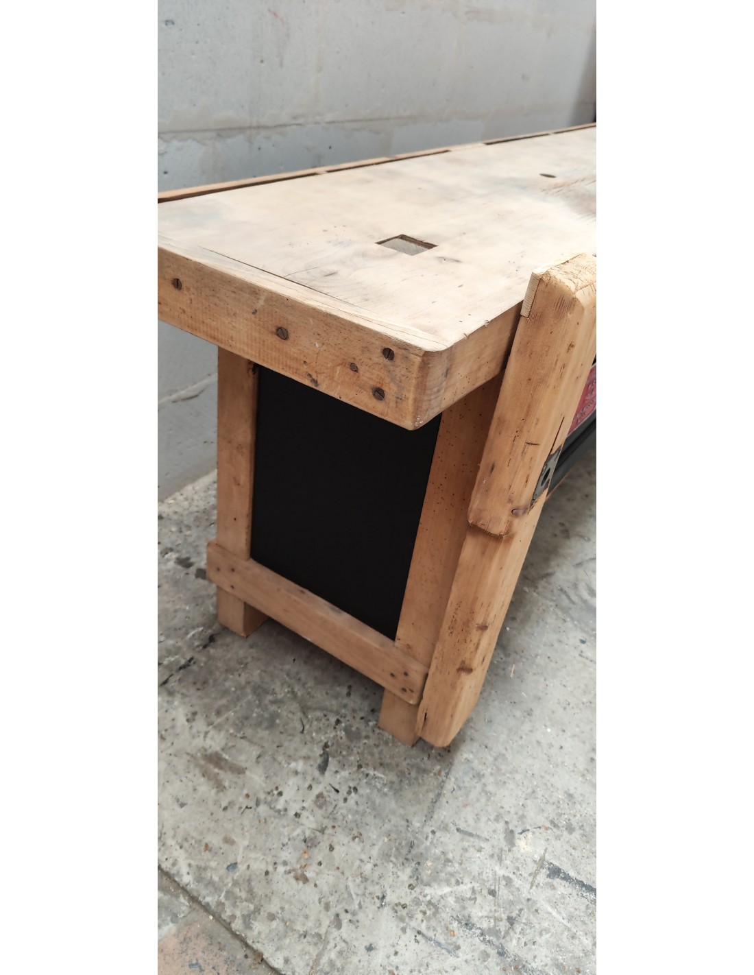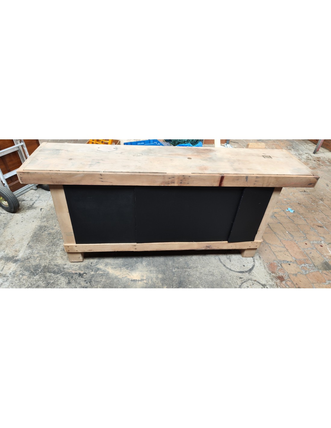 Etabli de menuisier tiroirs et porte patine noire meuble de métier