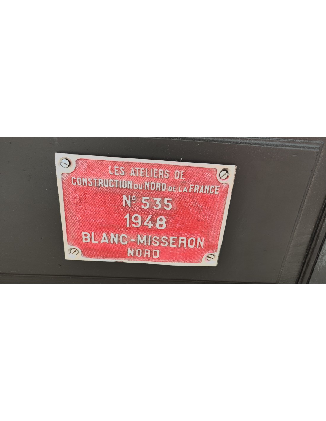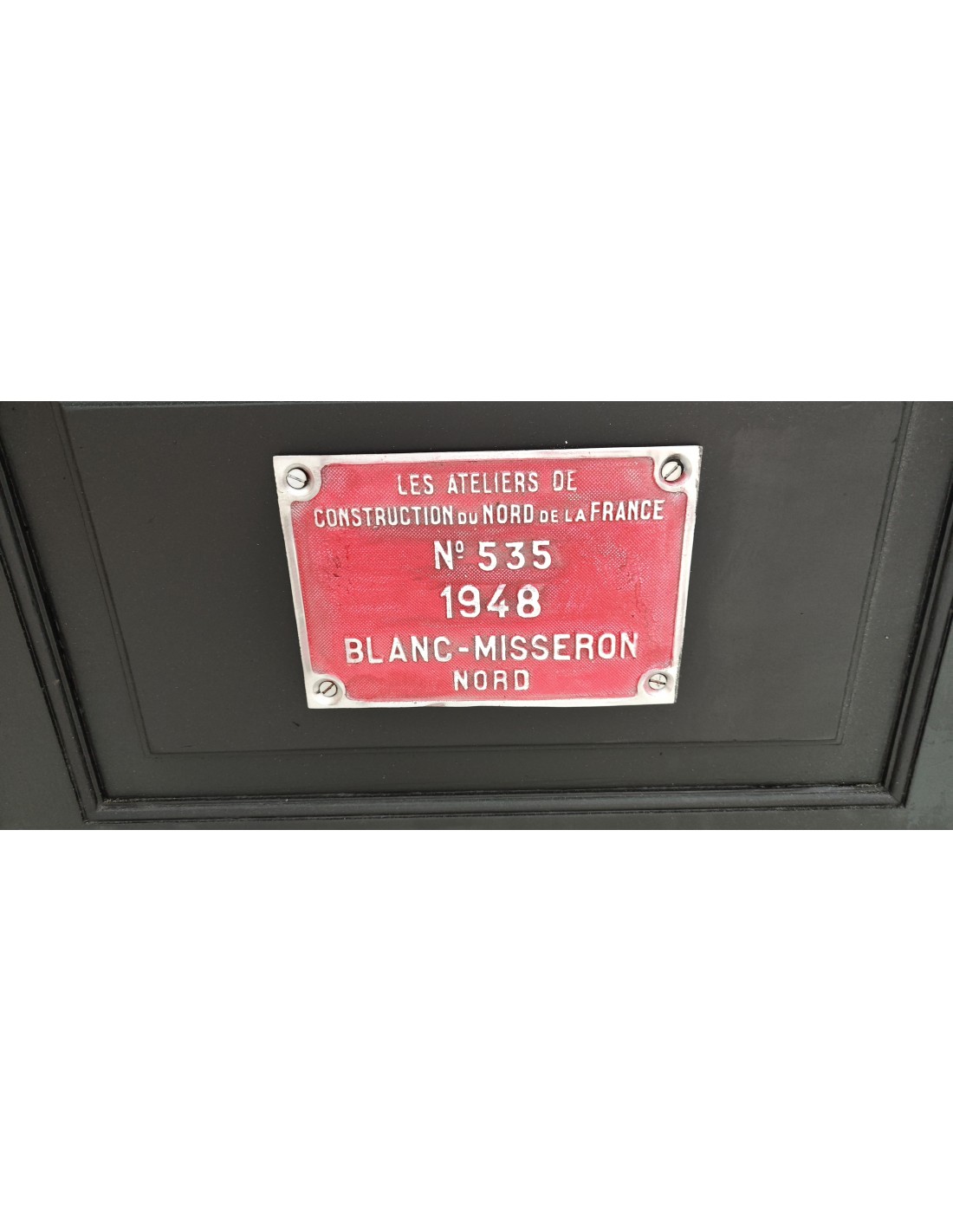 Agencement de l'intérieur avec 4 tiroirs en métal à gauche, une grande porte avec une superbe plaque en fonte d'aluminium