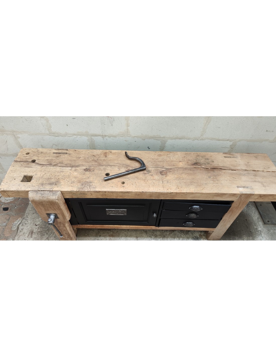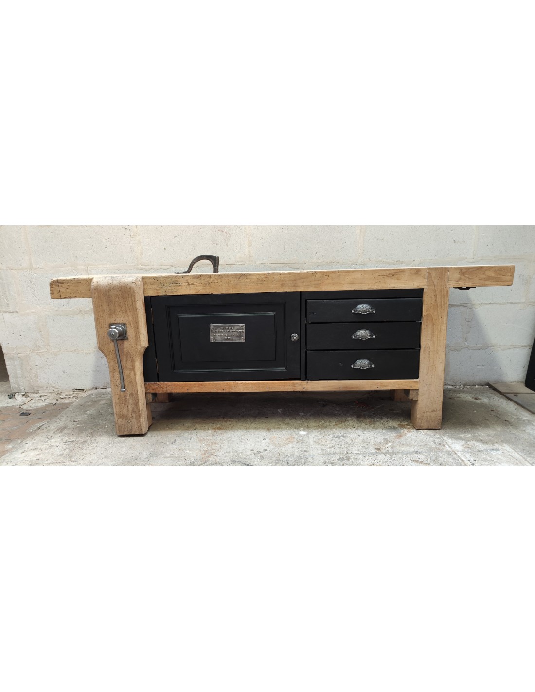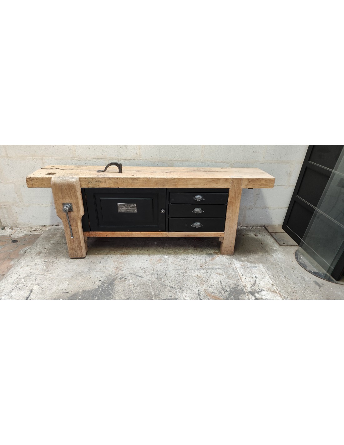 Grand établi une porte trois tiroirs meuble de métier