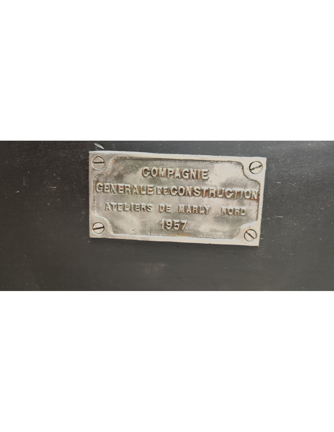 Il est composé d'une porte en bois patine noire avec une jolie plaque en fonte brossé pour la compagnie générale de construction ateliers de Marly dans le Nord 1957, intérieur une étagère de 74cm x 35 cm , et de trois tiroirs en bois patine noire