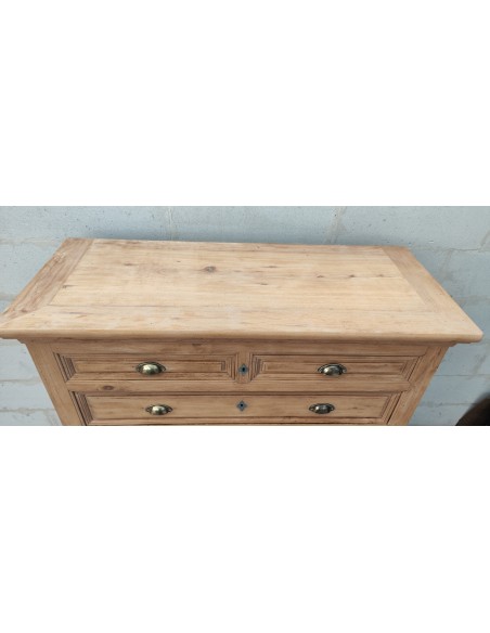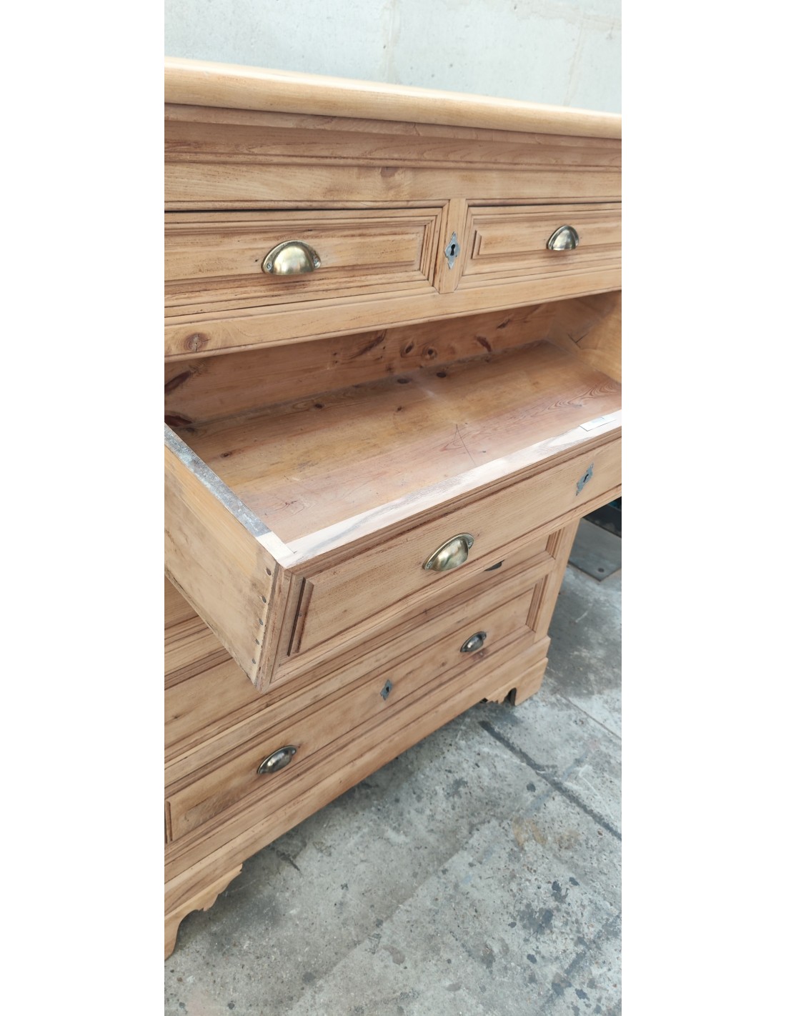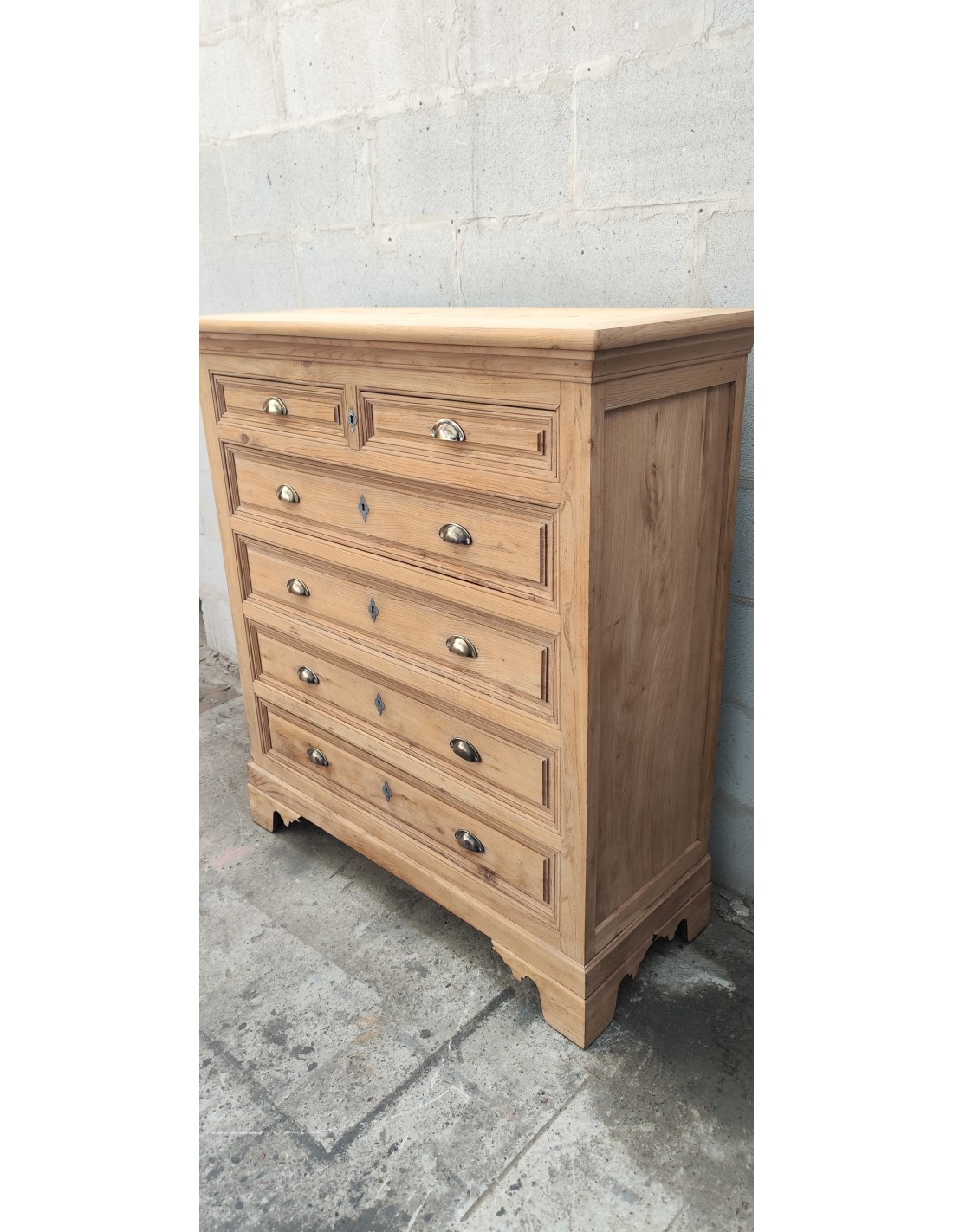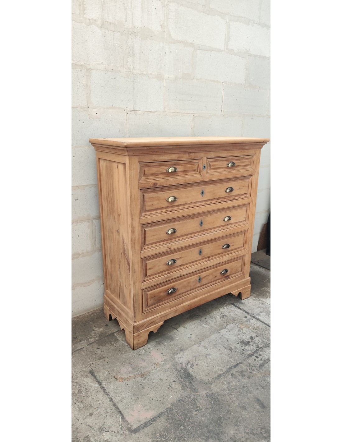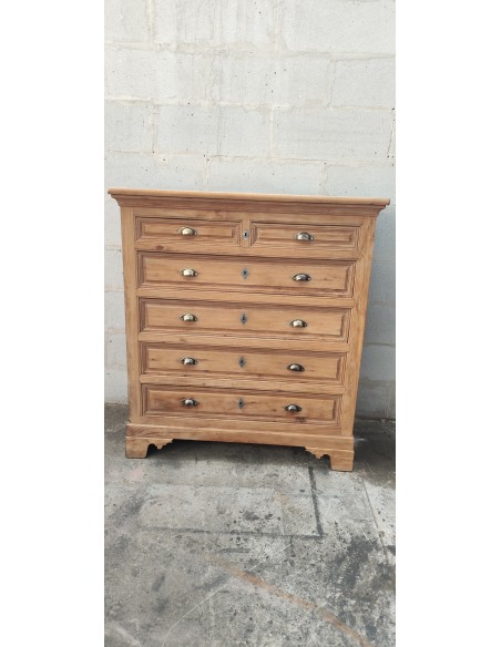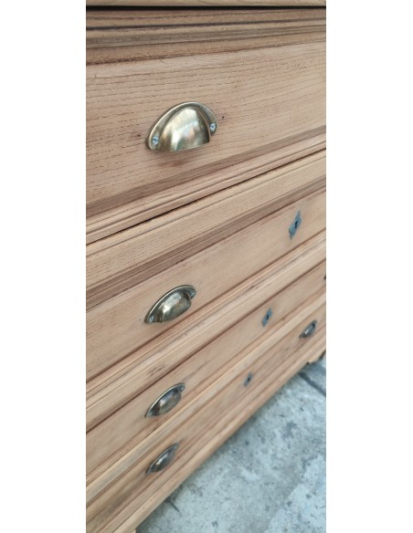 Cette commode est composée de six tiroirs, quatre grands de 94.5 cm x 37 cm et 15 cm de hauteur et deux petits en haut de 42.5 cm x 37 cm et 8 cm de hauteur